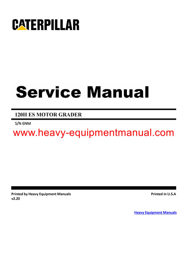 It is Complete Original Factory for Caterpillar 120H ES MOTOR GRADER. Covers all the service and repair information about Caterpillar 120H ES MOTOR GRADER. The information in this manual covers everything you need to know when you want to service and repair Caterpillar 120H ES MOTOR GRADER.