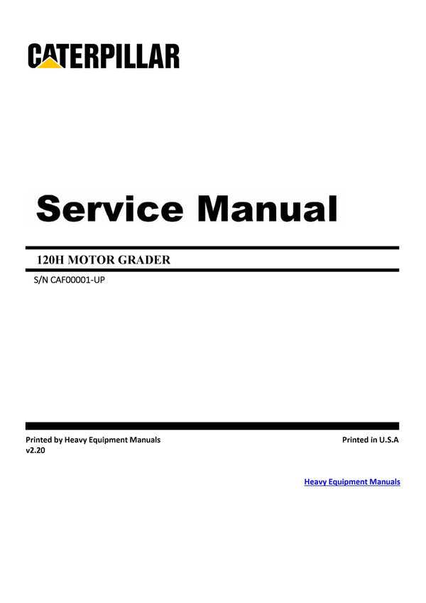 It is Complete Original Factory for Caterpillar 120H MOTOR GRADER. Covers all the service and repair information about Caterpillar 120H MOTOR GRADER. The information in this manual covers everything you need to know when you want to service and repair Caterpillar 120H MOTOR GRADER.