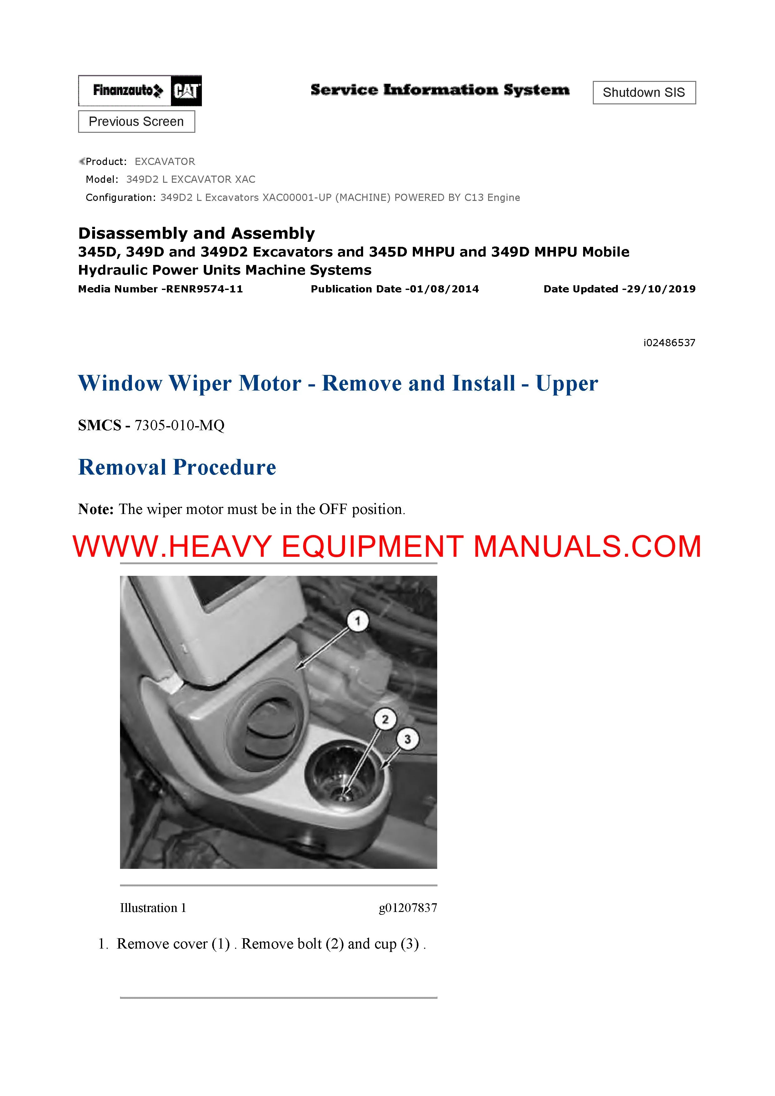 It is Complete Original Factory for Caterpillar 349D2 L EXCAVATOR. Covers all the service and repair information about Caterpillar 349D2 L EXCAVATOR. The information in this manual covers everything you need to know when you want to service and repair Caterpillar 349D2 L EXCAVATOR.