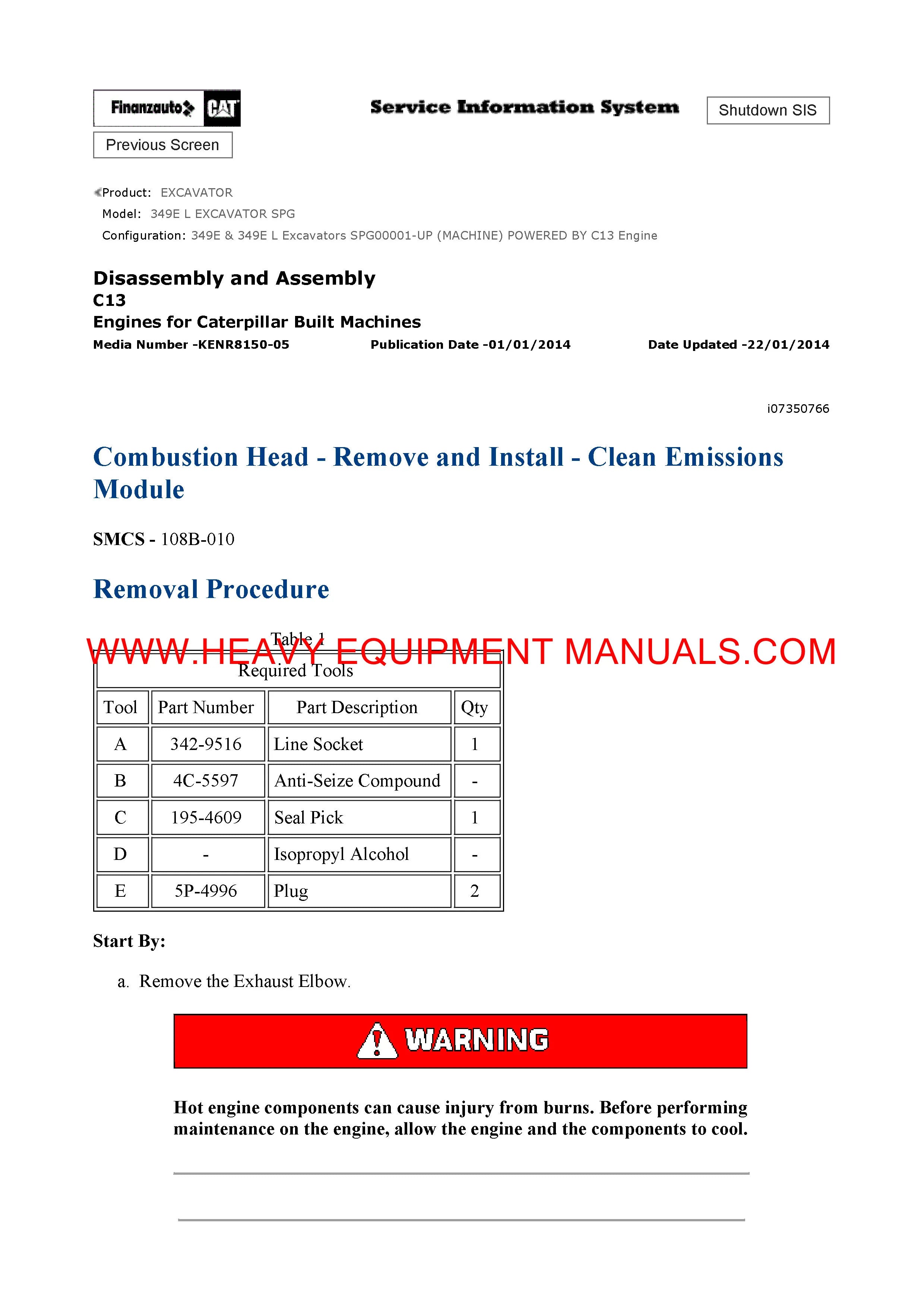 It is Complete Original Factory for Caterpillar 349E L EXCAVATOR. Covers all the service and repair information about Caterpillar 349E L EXCAVATOR. The information in this manual covers everything you need to know when you want to service and repair Caterpillar 349E L EXCAVATOR.