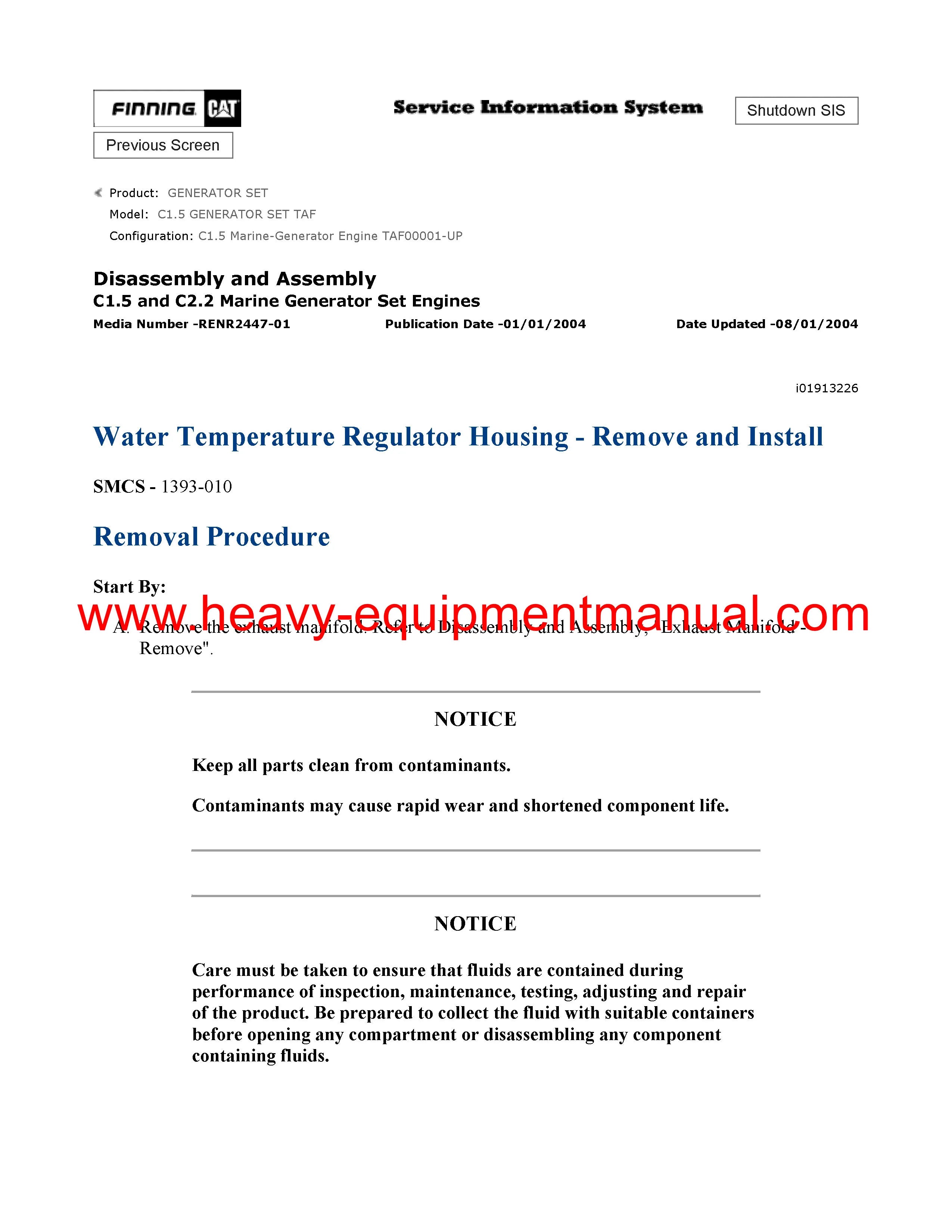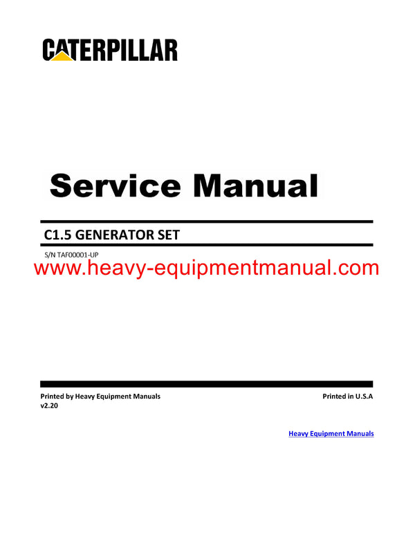 It is Complete Original Factory for Caterpillar C1.5 GENERATOR SET. Covers all the service and repair information about Caterpillar C1.5 GENERATOR SET. The information in this manual covers everything you need to know when you want to service and repair Caterpillar C1.5 GENERATOR SET.