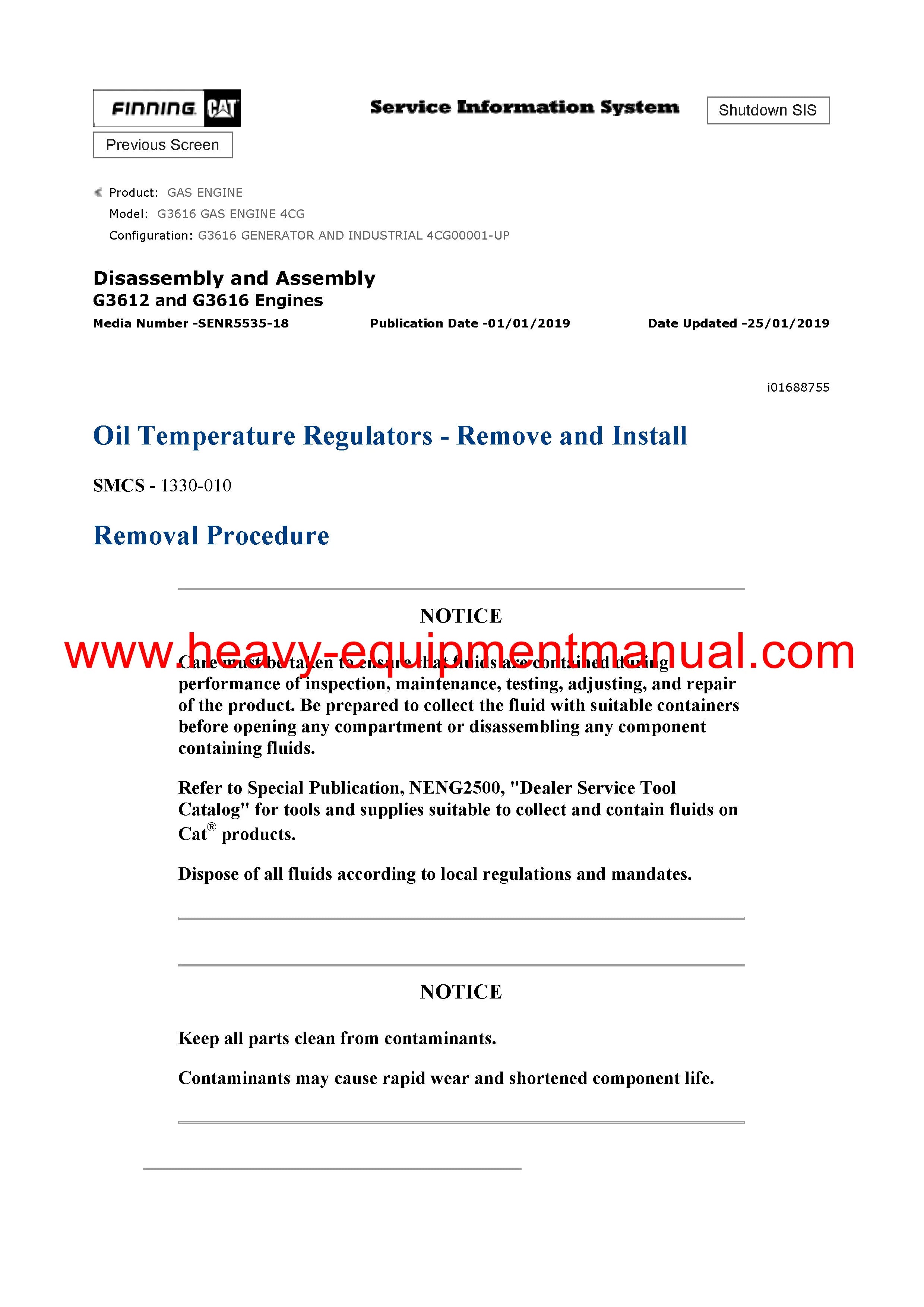 It is Complete Original Factory for Caterpillar G3616 GAS ENGINE. Covers all the service and repair information about Caterpillar G3616 GAS ENGINE. The information in this manual covers everything you need to know when you want to service and repair Caterpillar G3616 GAS ENGINE.