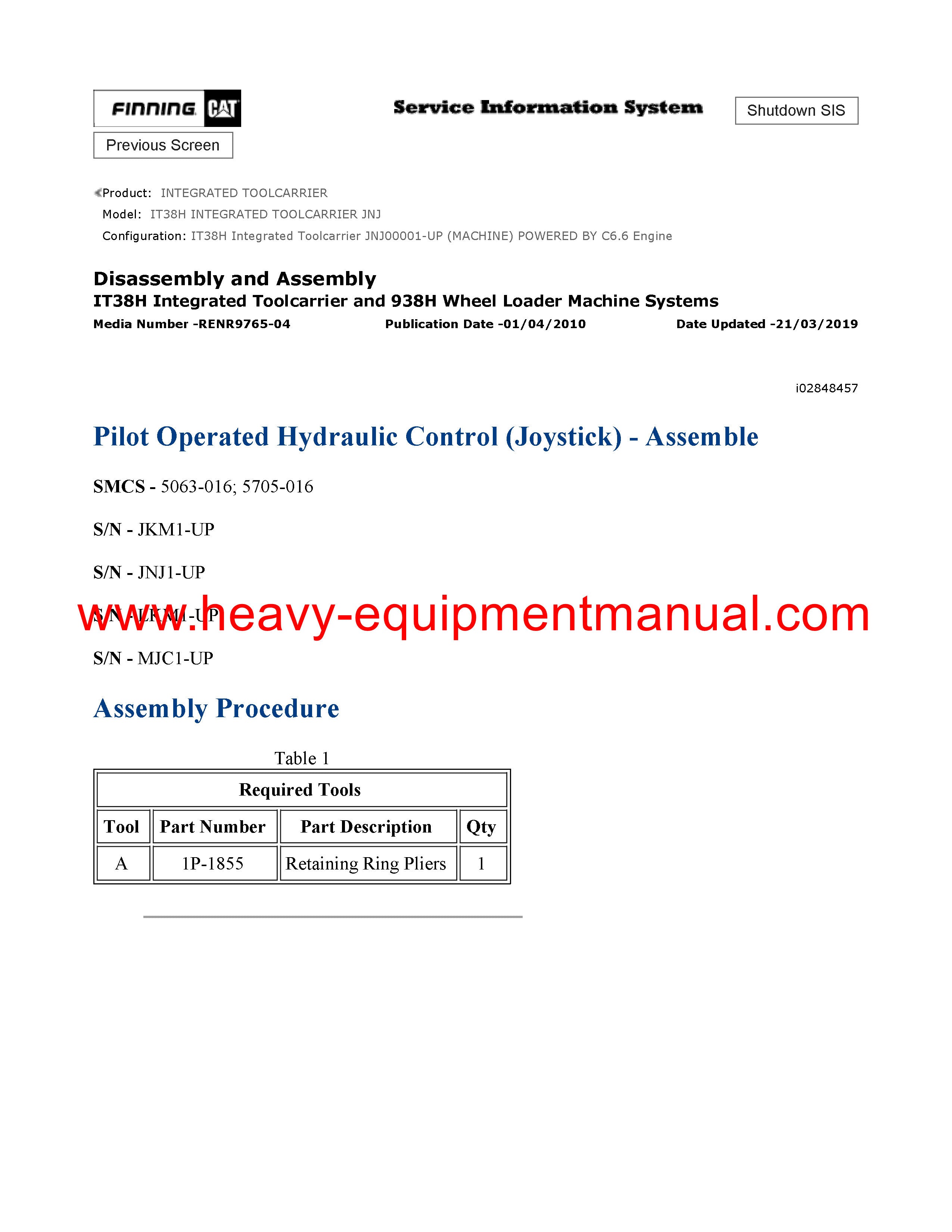 Caterpillar IT38H INTEGRATED TOOLCARRIER Disassembly and Assembly