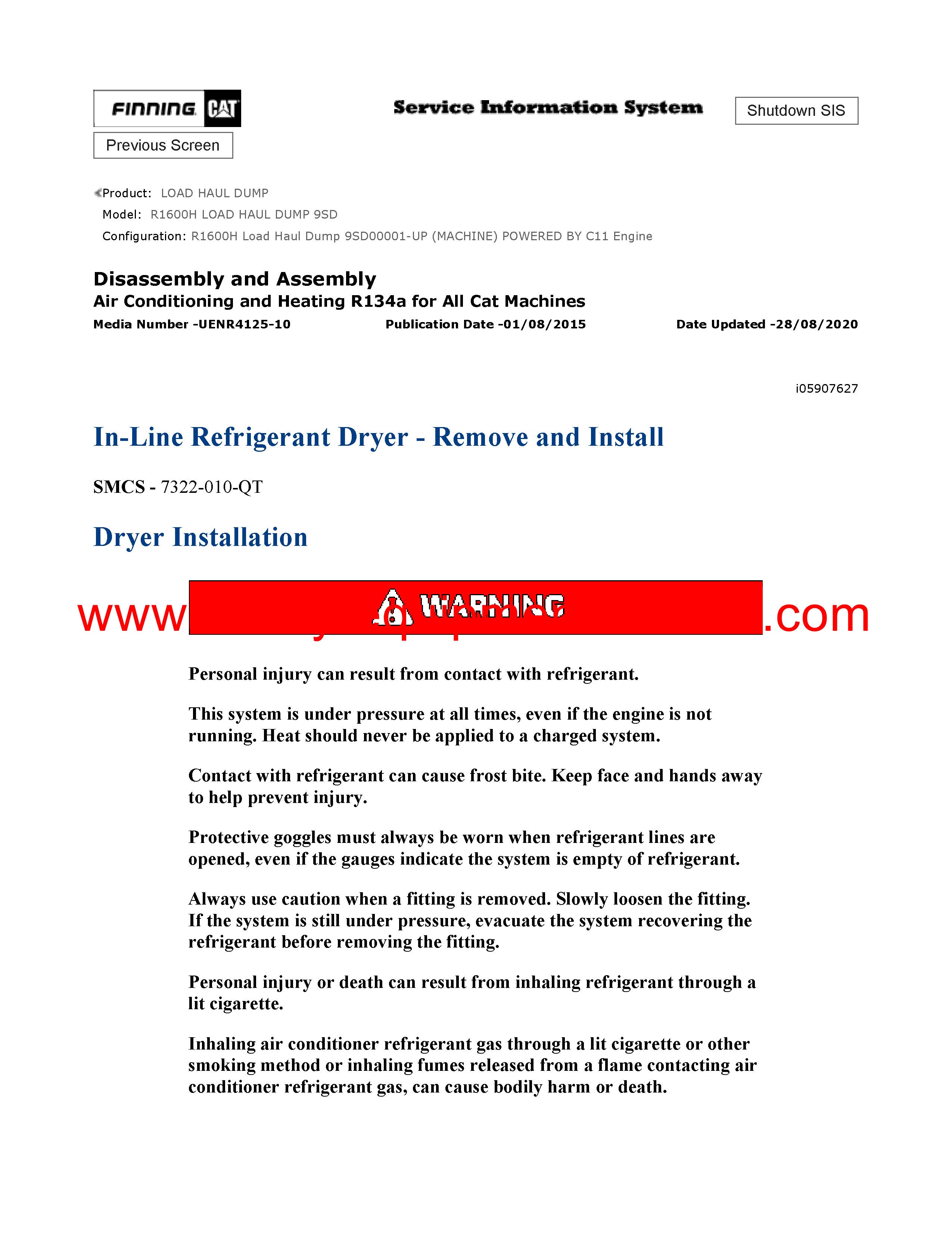 It is Complete Original Factory for Caterpillar R1600H LOAD HAUL DUMP. Covers all the service and repair information about Caterpillar R1600H LOAD HAUL DUMP. The information in this manual covers everything you need to know when you want to service and repair Caterpillar R1600H LOAD HAUL DUMP.