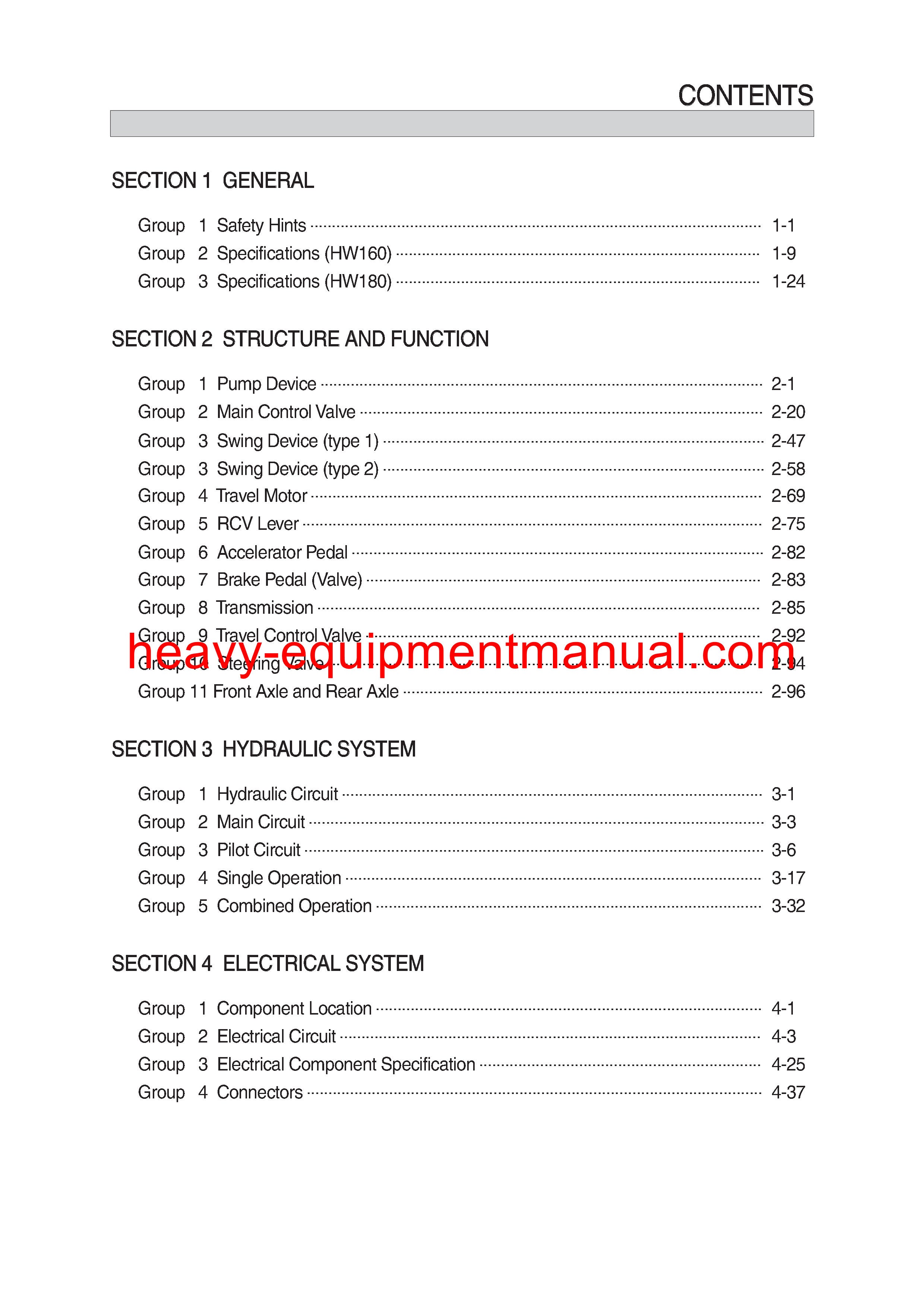 It is Complete Original Factory for Hyundai HW160,180 Wheel Excavator Service Manual covers all the service and repair information about Hyundai HW160,180 Wheel Excavator. The information in this manual covers everything you need to know when you want to repair Hyundai HW160,180 Wheel Excavator.