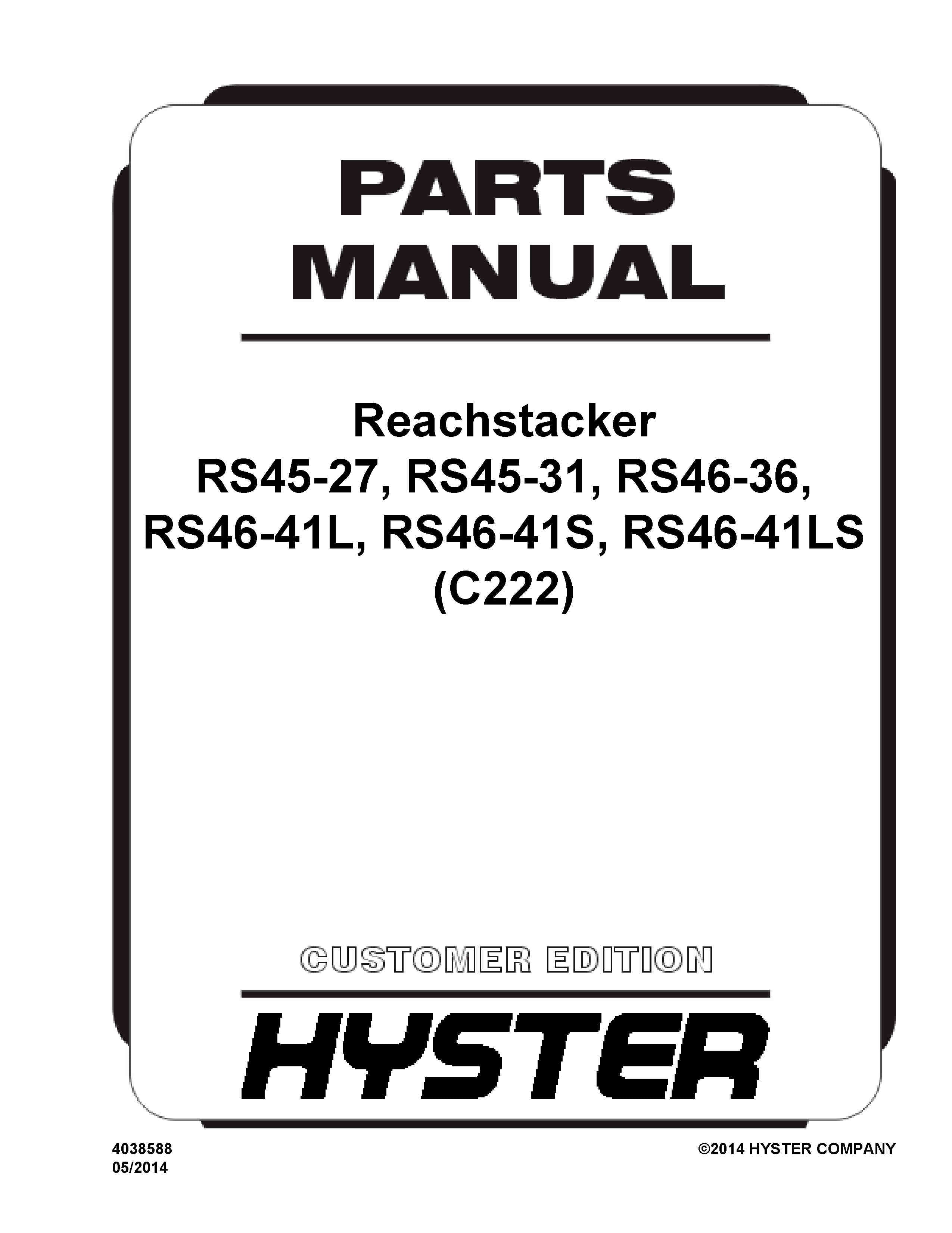 Hyster RS45-27 31CH, RS46-36 41L S LS-CH, RS46-33 38L S LS-IH, RS45-24 28IH C222 Series Parts Manual