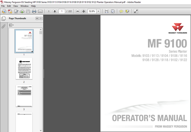 MASSEY FERGUSON 9103 9113 9104 9106 9116 9108 9128 9118 9102 9122 PLANTER OPERATOR MANUAL