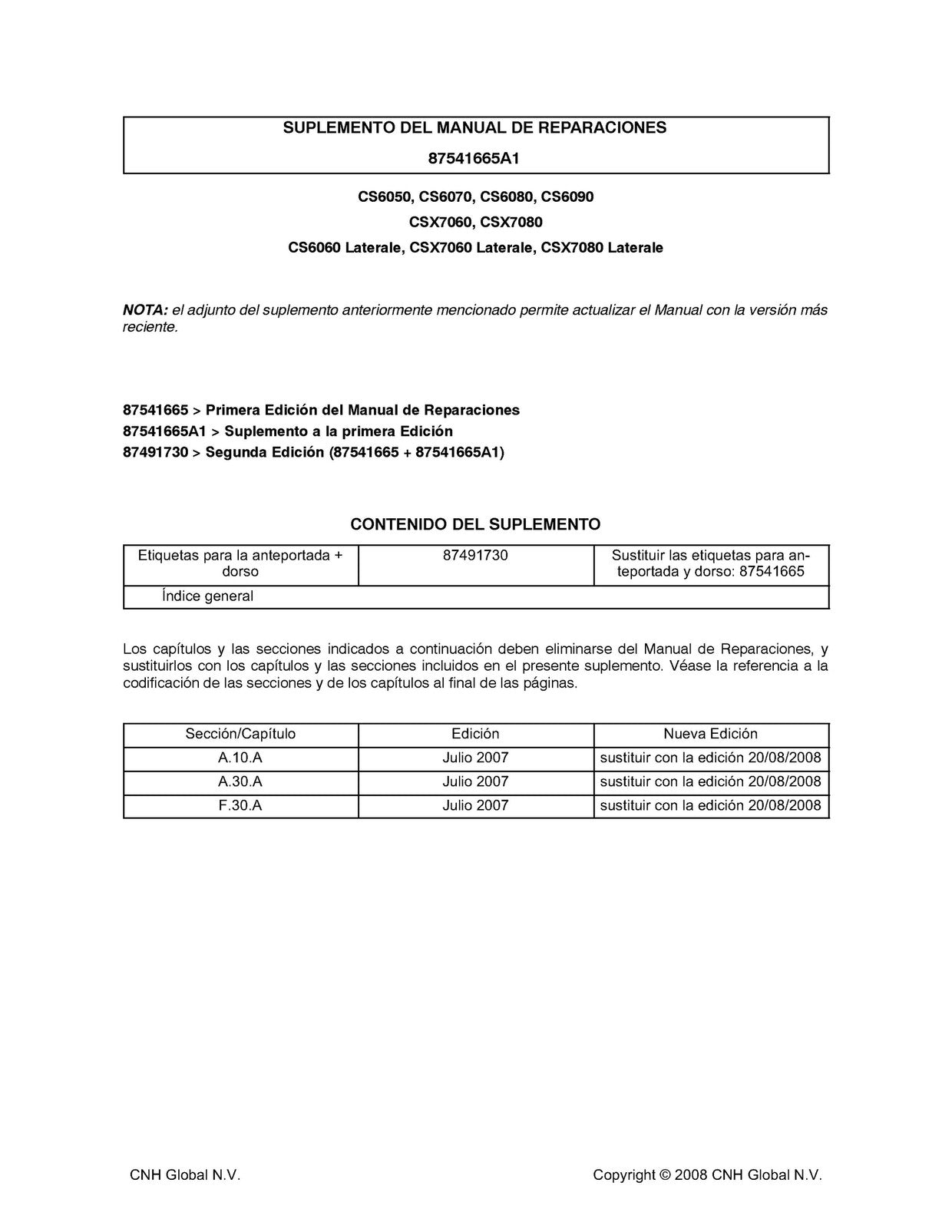 It is Complete Original Factory for NEW HOLLAND CL6060, CS6050, CS6060, CS6070, CS6080, CS6090, CSX7060, CSX7080 Combine. Covers all the service and repair information about NEW HOLLAND CL6060, CS6050, CS6060, CS6070, CS6080, CS6090, CSX7060, CSX7080 Combine. The information in this manual covers everything you need to know when you want to service and repair NEW HOLLAND CL6060, CS6050, CS6060, CS6070, CS6080, CS6090, CSX7060, CSX7080 Combine.