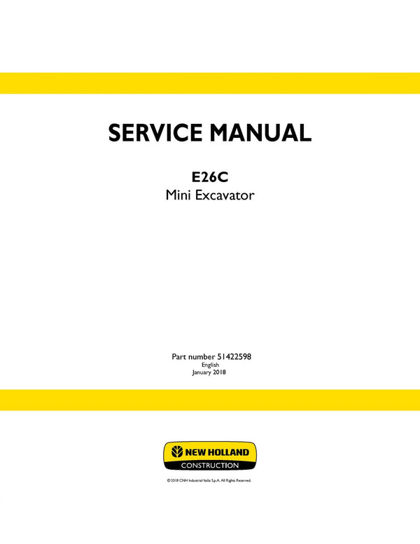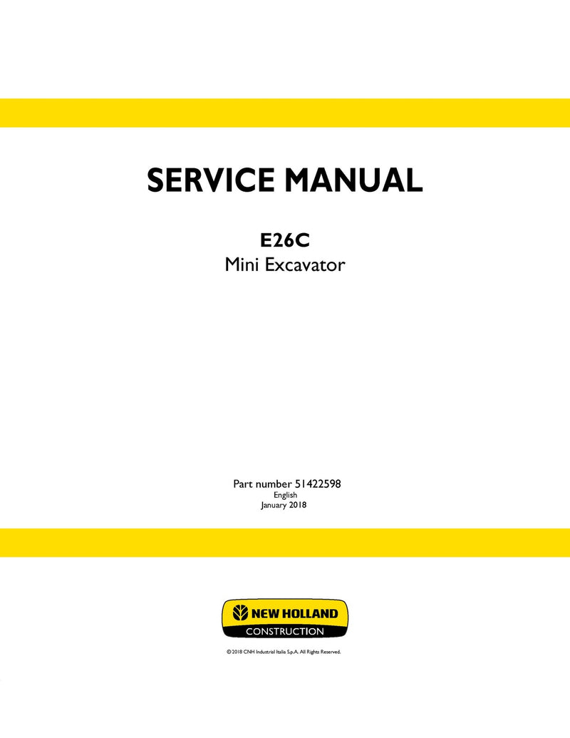 It is Complete Original Factory for New Holland E26C Mini Excavator. Covers all the service and repair information about New Holland E26C Mini Excavator. The information in this manual covers everything you need to know when you want to service and repair New Holland E26C Mini Excavator.