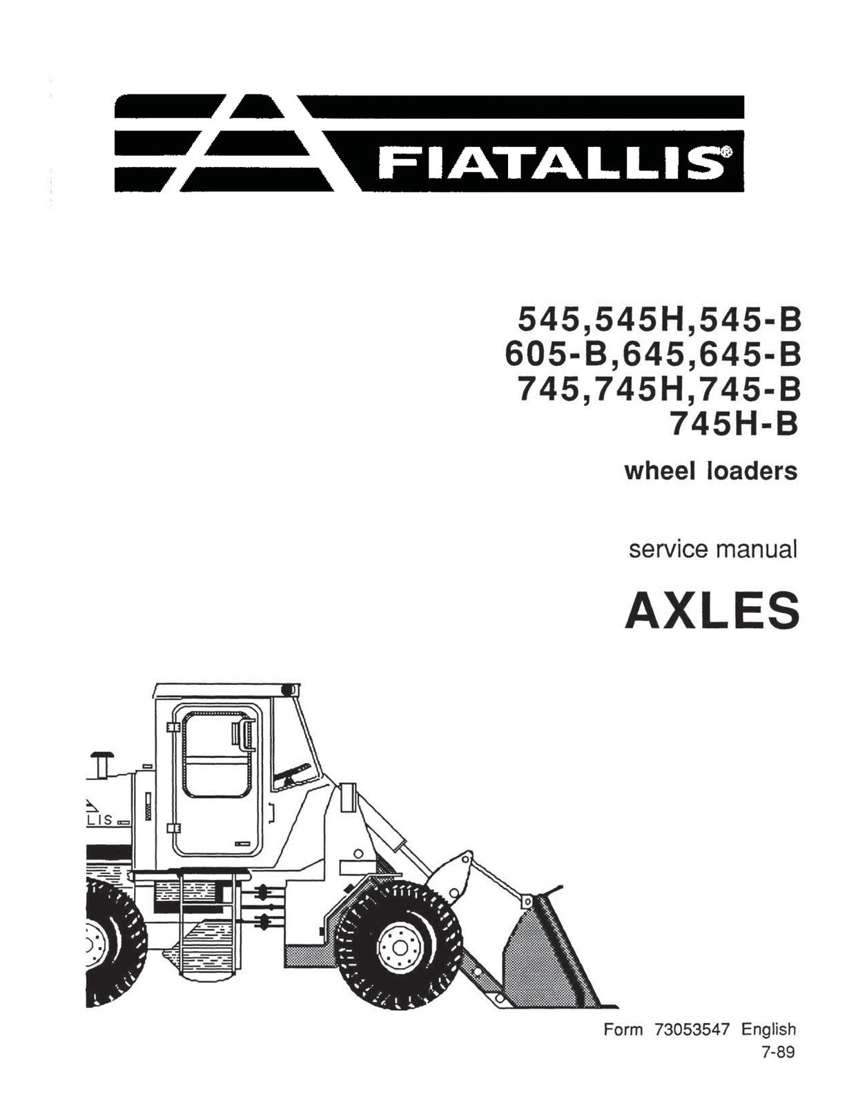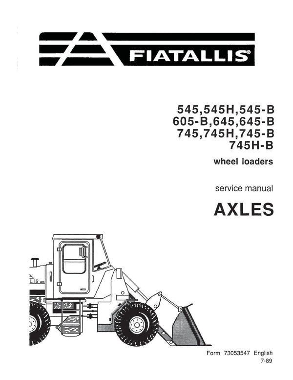 It is Complete Original Factory for New Holland Fiat-Allis 545, 545H, 545-B, 605-B, 645, 645-B, 745, 745H, 745-B, 745H-B Wheel Loader Axles. Covers all the service and repair information about New Holland Fiat-Allis 545, 545H, 545-B, 605-B, 645, 645-B, 745, 745H, 745-B, 745H-B Wheel Loader Axles. The information in this manual covers everything you need to know when you want to service and repair New Holland Fiat-Allis 545, 545H, 545-B, 605-B, 645, 645-B, 745, 745H, 745-B, 745H-B Wheel Loader Axles.