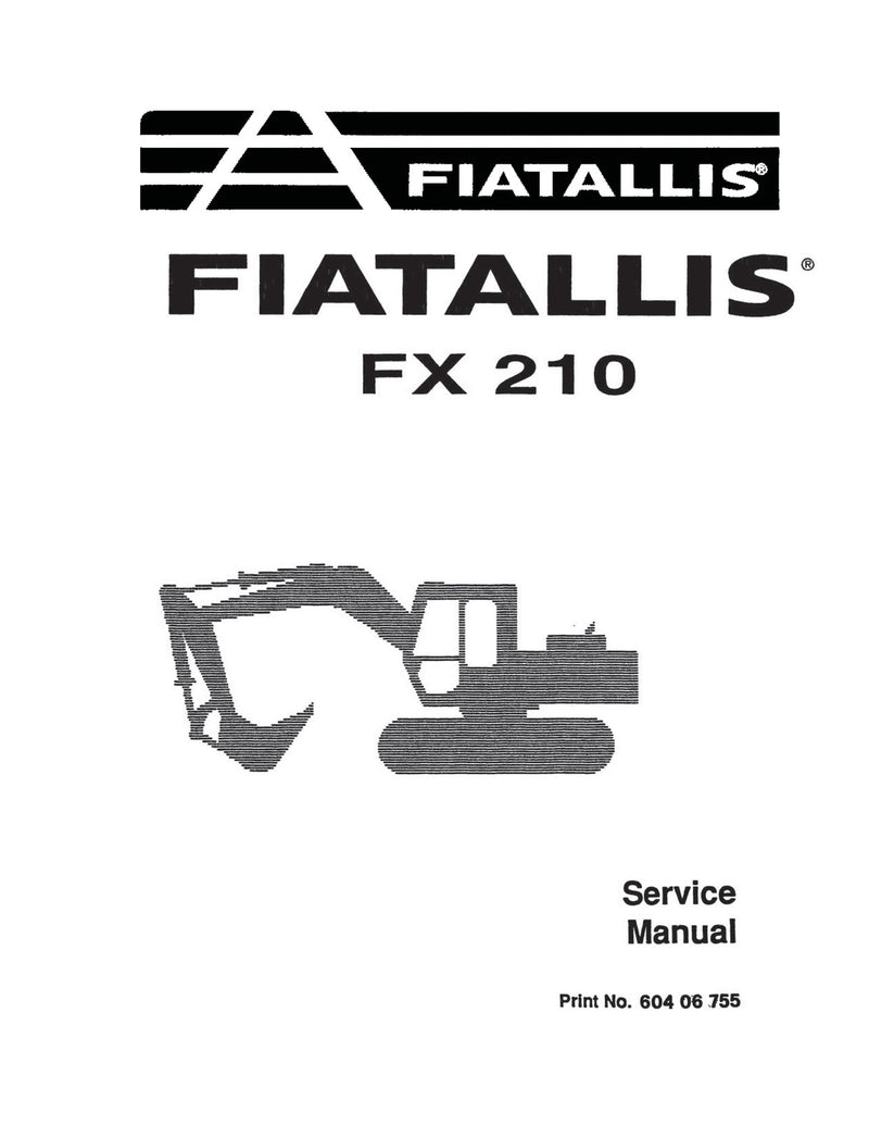 It is Complete Original Factory for New Holland Fiat Allis fx210 Track Excavator. Covers all the service and repair information about New Holland Fiat Allis fx210 Track Excavator. The information in this manual covers everything you need to know when you want to service and repair New Holland Fiat Allis fx210 Track Excavator.