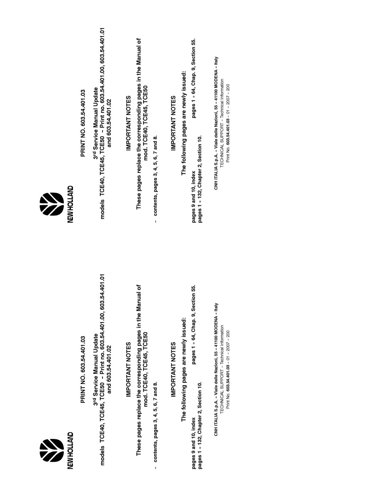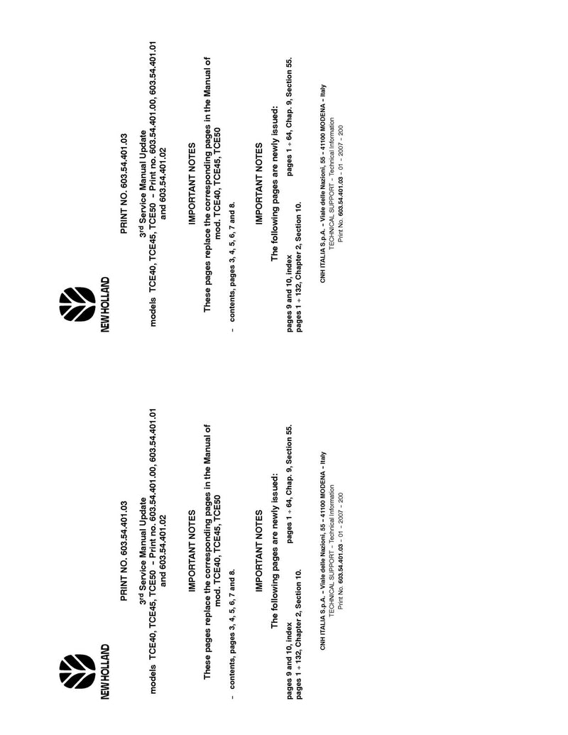 New Holland Tractor TCE40 TCE45 TCE50 Brochure Service Repair Manual 6035440103 trust Badges