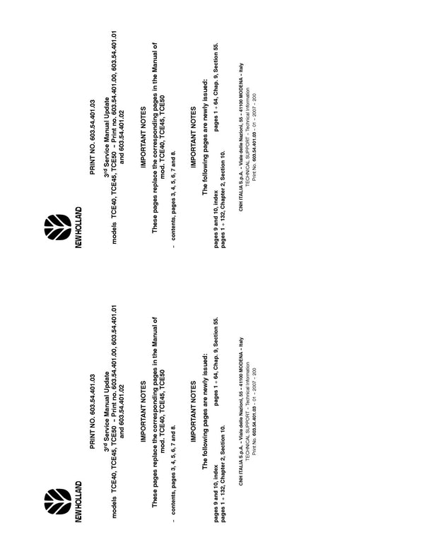 New Holland Tractor TCE40 TCE45 TCE50 Brochure Service Repair Manual 6035440103