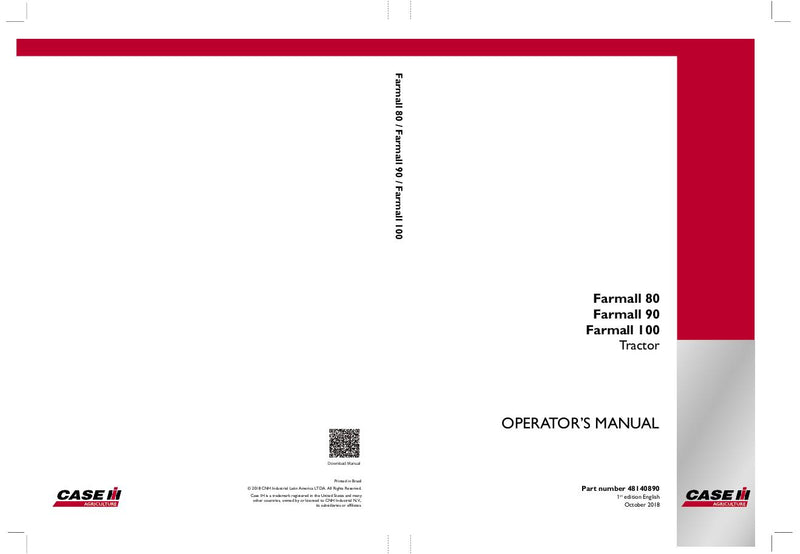 It is an Complete Factory original factory Operator's Manual For Case IH Tractor Farmall 80 90 100 Operator’s. We Offers Manual HIGH quality images, diagrams, instructions to help you to operate. This document is printable, without restrictions, contains searchable text, bookmarks, crosslinks for easy navigation.