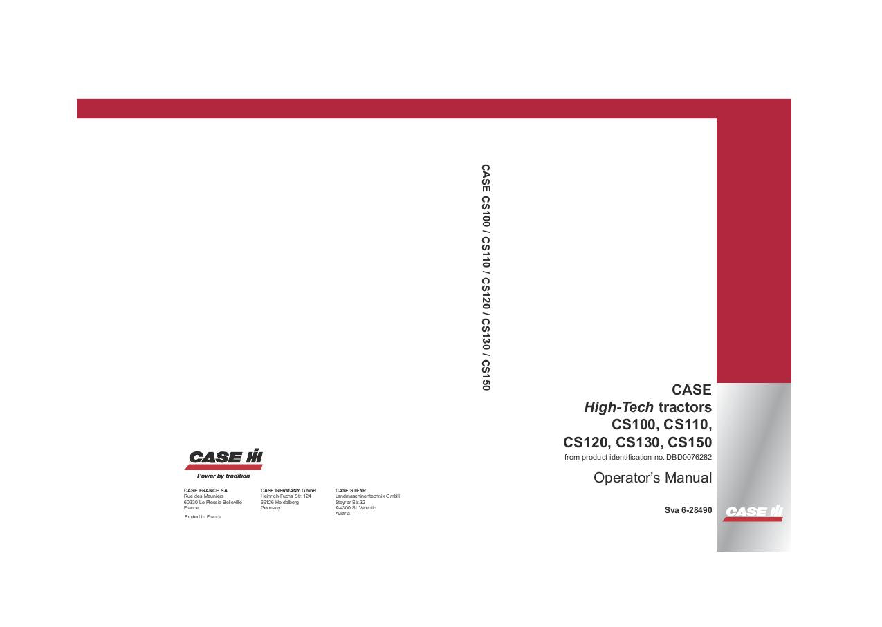 It is an Complete Factory original factory Operator's Manual For Case IH Tractor High-Tech CS100 CS110 CS120 CS130 CS150 Operator’s. We Offers Manual HIGH quality images, diagrams, instructions to help you to operate. This document is printable, without restrictions, contains searchable text, bookmarks, crosslinks for easy navigation.
