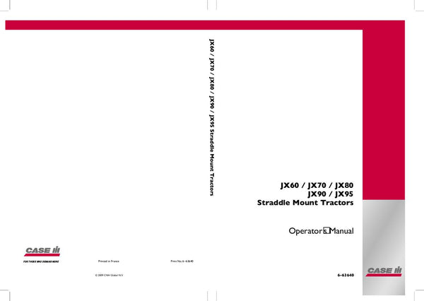 It is an Complete Factory original factory Operator's Manual For Case IH Tractor JX 60 70 80 90 95 Straddle Mount Operator’s. We Offers Manual HIGH quality images, diagrams, instructions to help you to operate. This document is printable, without restrictions, contains searchable text, bookmarks, crosslinks for easy navigation.