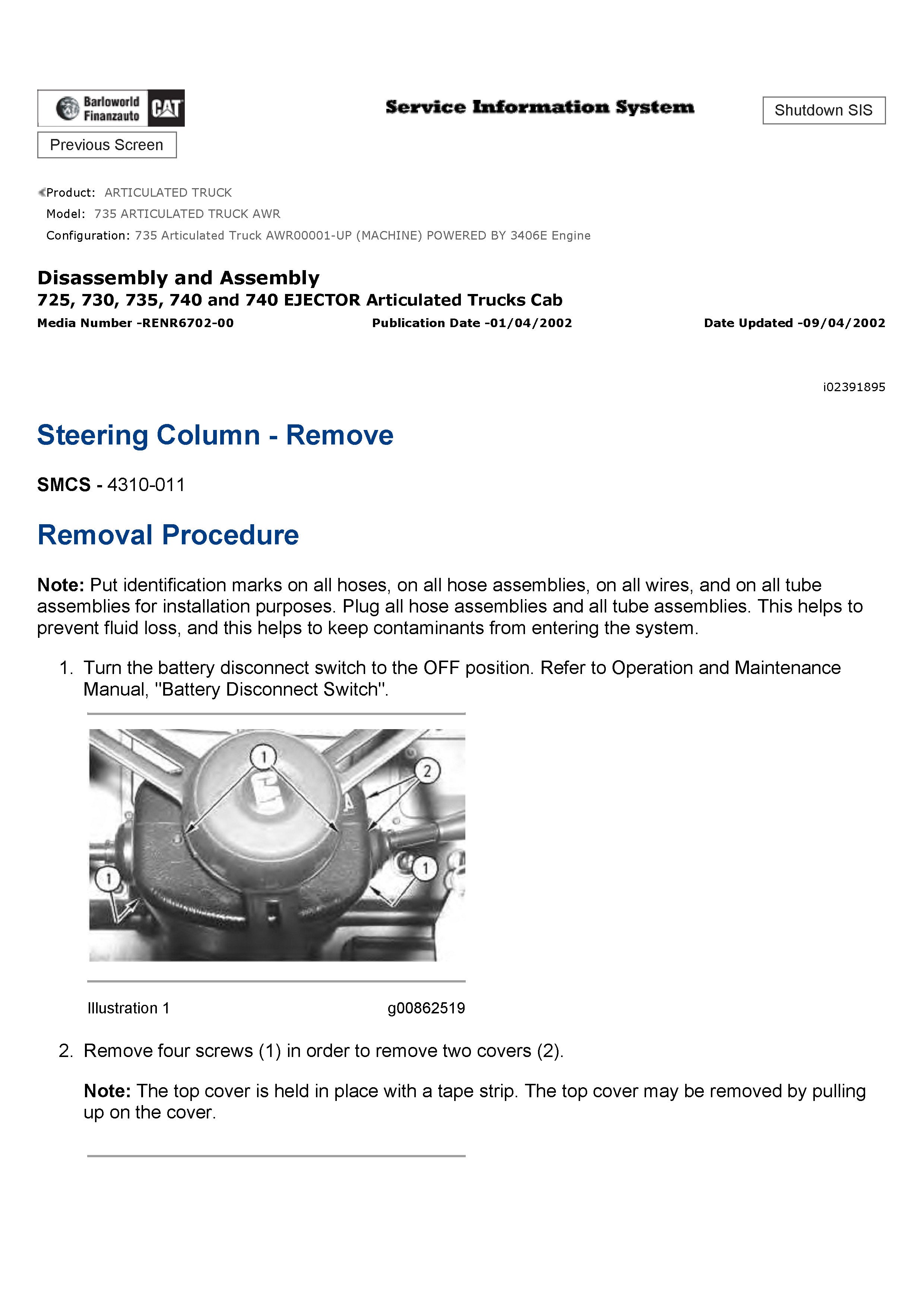 CATERPILLAR 735 ARTICULATED TRUCK General Service Information