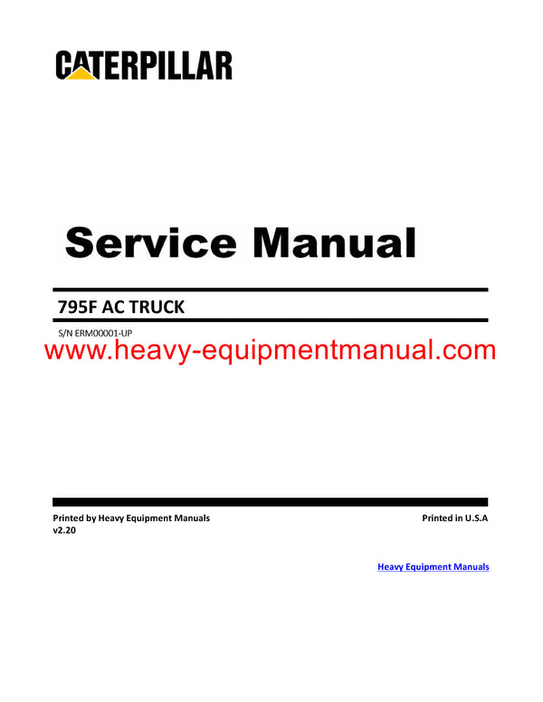 It is Complete Original Factory for Caterpillar 795F AC TRUCK Covers all the service and repair information about Caterpillar 795F AC TRUCK The information in this manual covers everything you need to know when you want to service and repair Caterpillar 795F AC TRUCK .