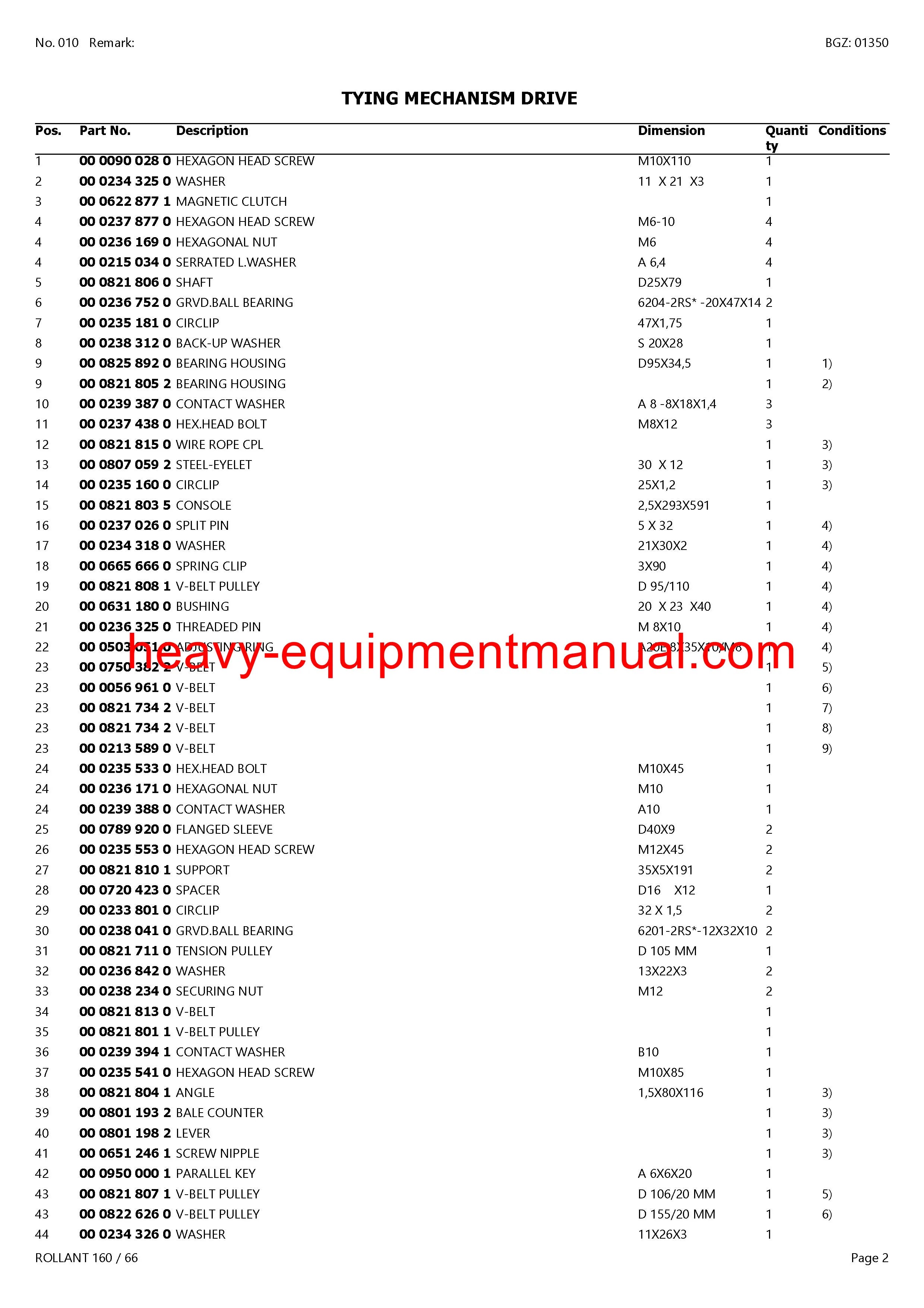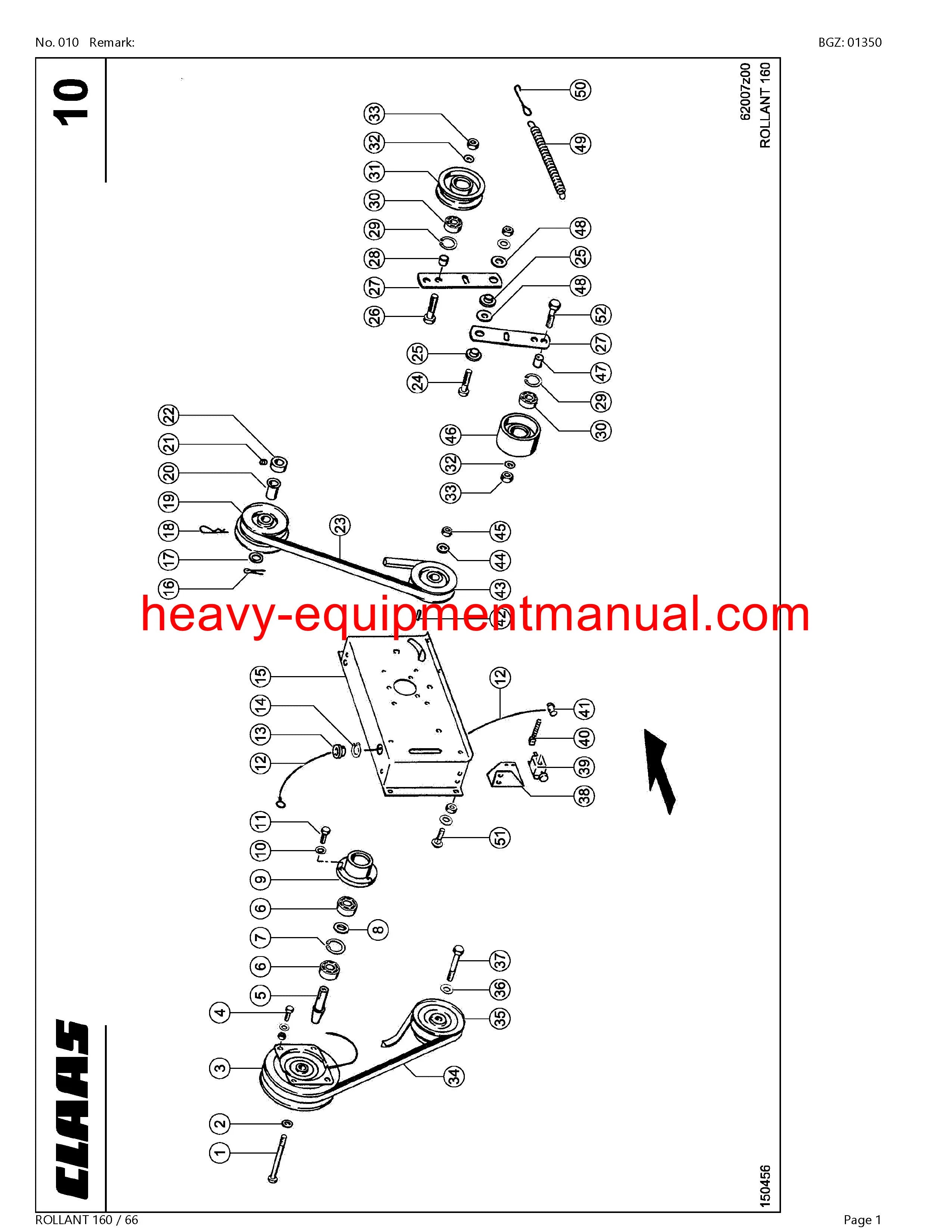 CLAAS ROLLANT 160 / 66 BALER PARTS CATALOG MANUAL SN 00800001-00899999
