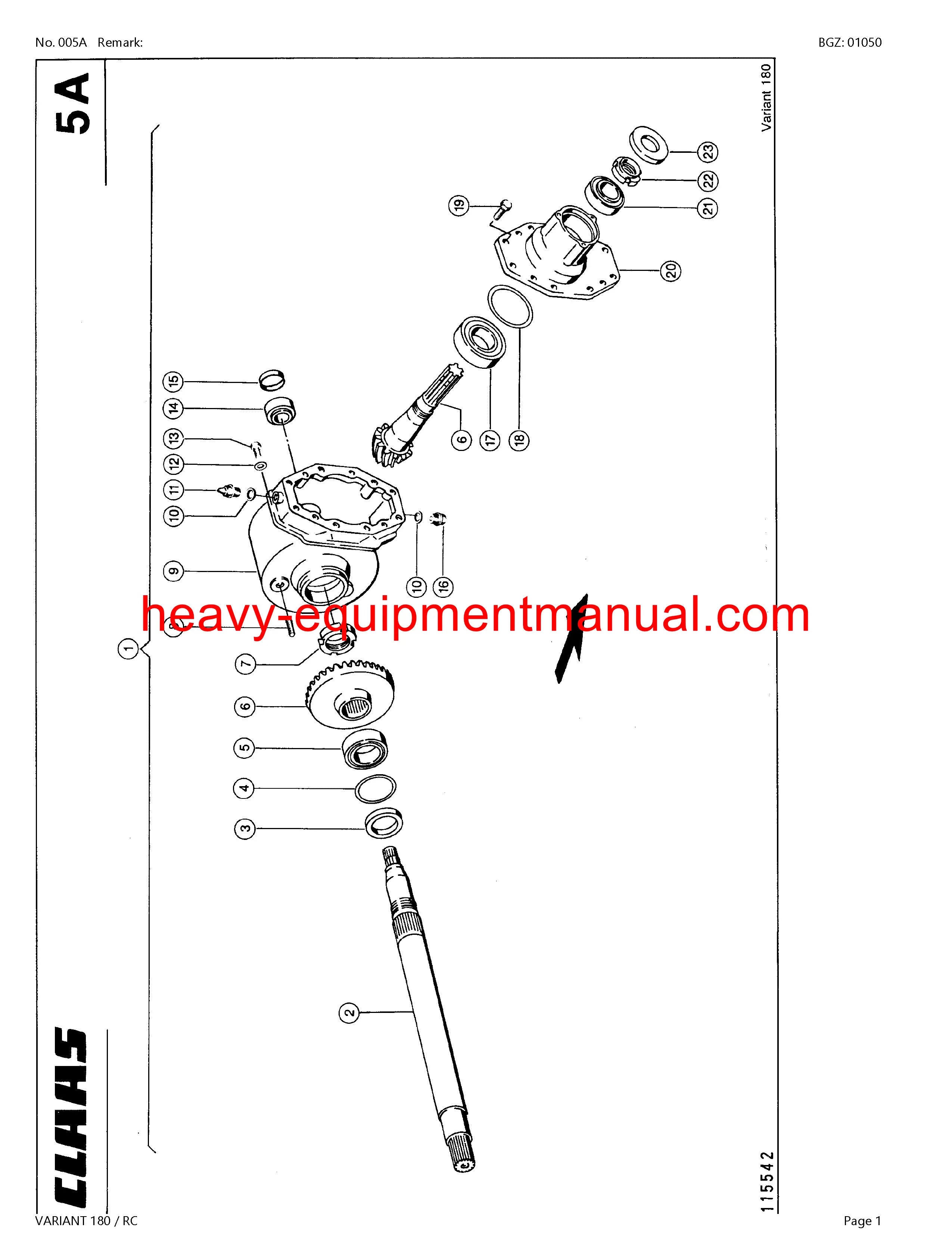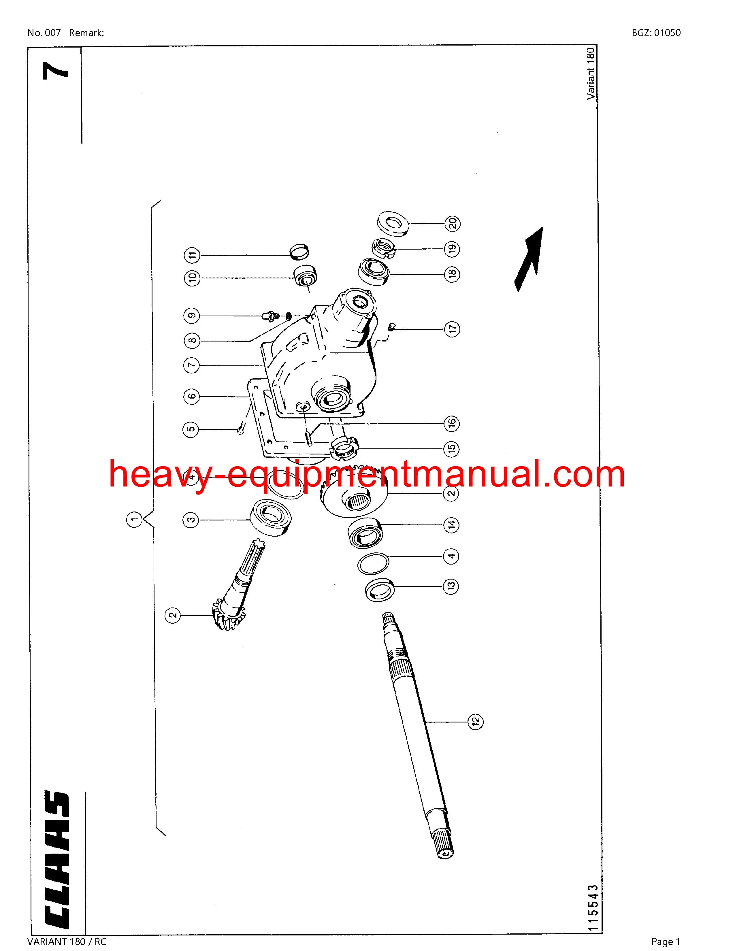 CLAAS VARIANT 180 RC BALER PARTS CATALOG MANUAL SN 04901497 - 04999999