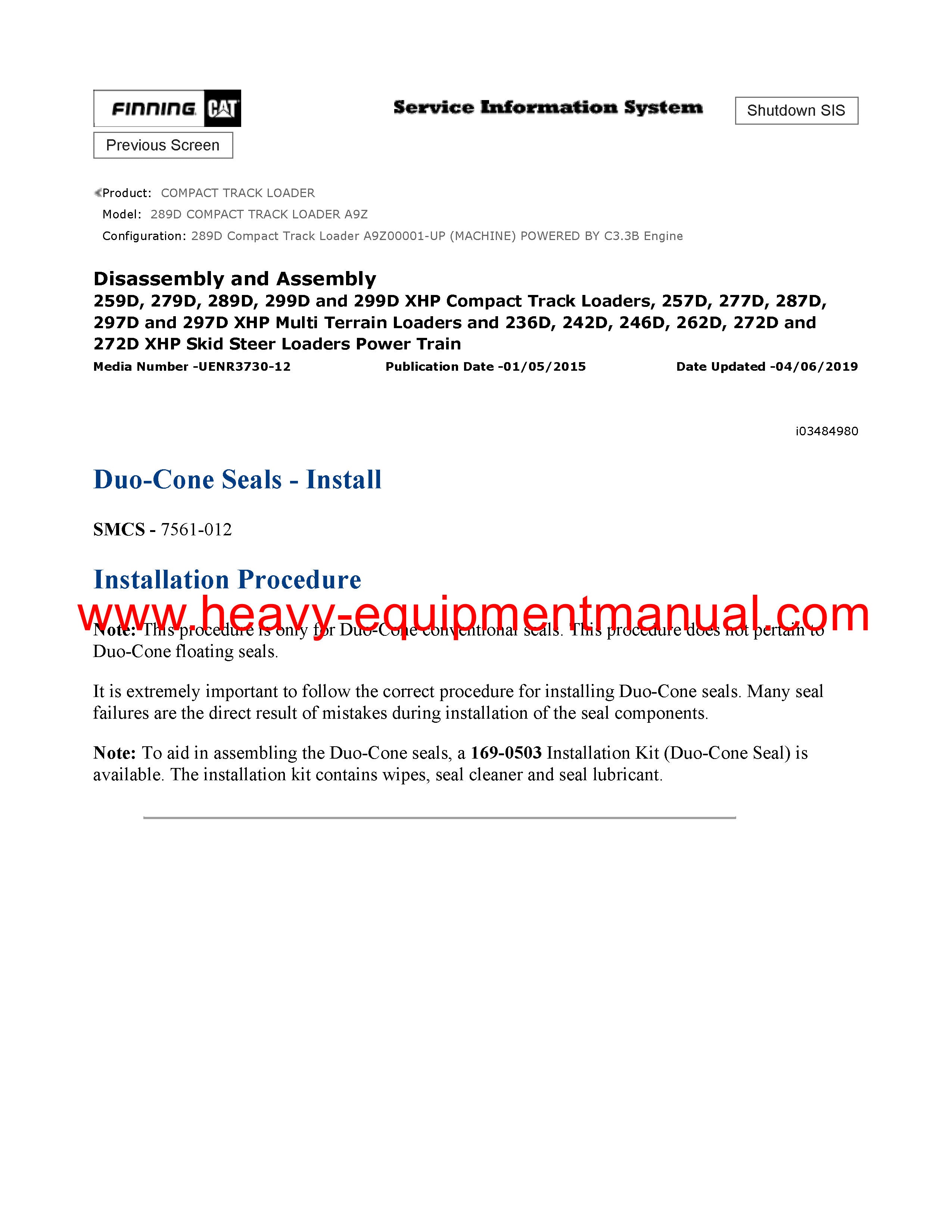 It is Complete Original Factory for Caterpillar 289D COMPACT TRACK LOADER. Covers all the service and repair information about Caterpillar 289D COMPACT TRACK LOADER. The information in this manual covers everything you need to know when you want to service and repair Caterpillar 289D COMPACT TRACK LOADER.