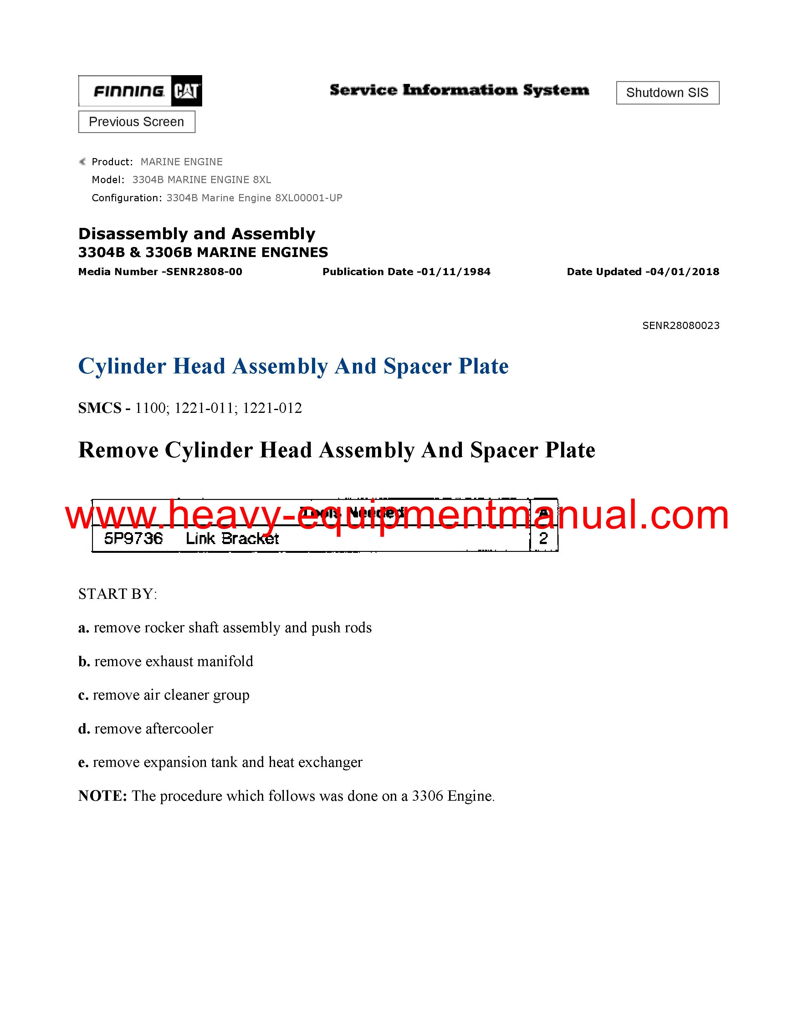 It is Complete Original Factory for Caterpillar 3304B MARINE ENGINE. Covers all the service and repair information about Caterpillar 3304B MARINE ENGINE. The information in this manual covers everything you need to know when you want to service and repair Caterpillar 3304B MARINE ENGINE.
