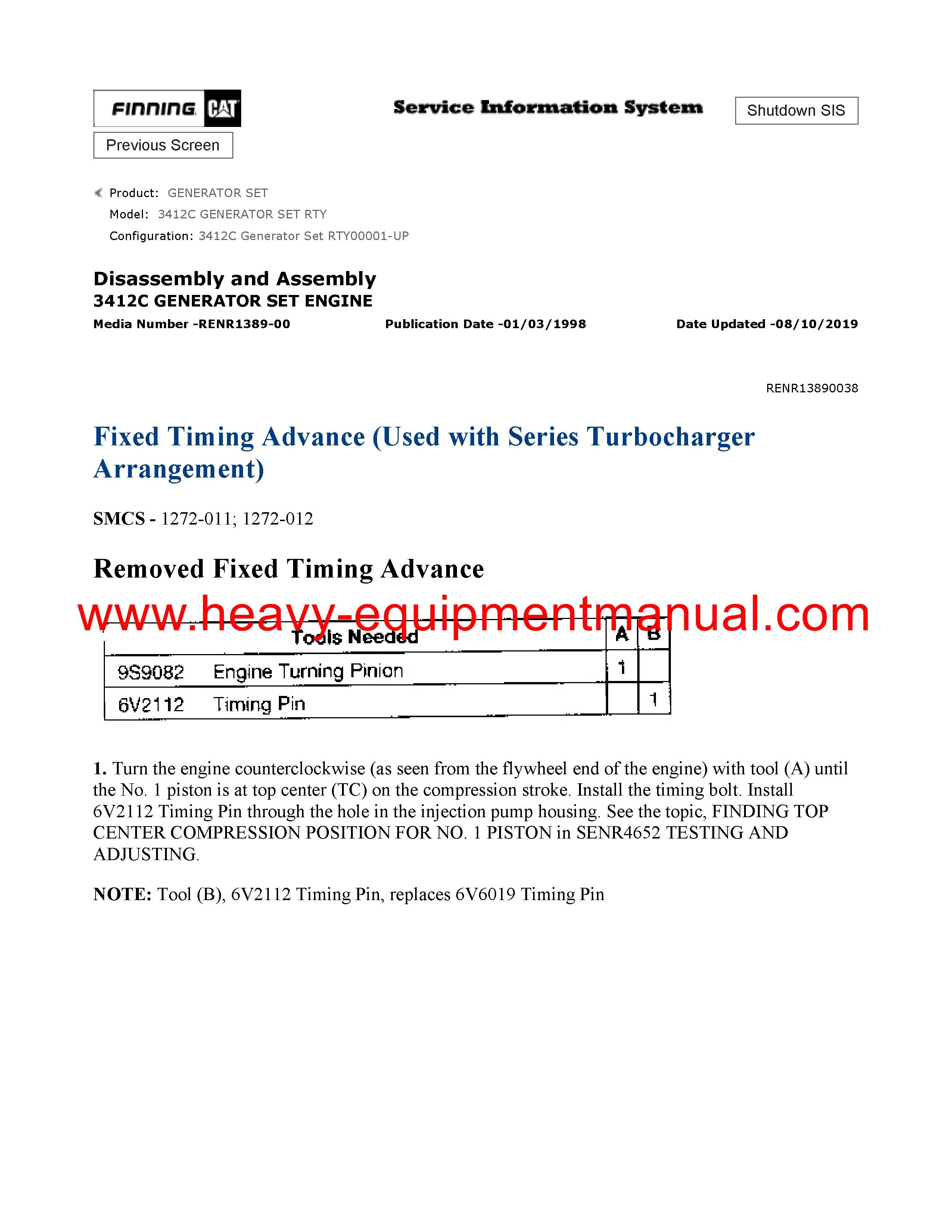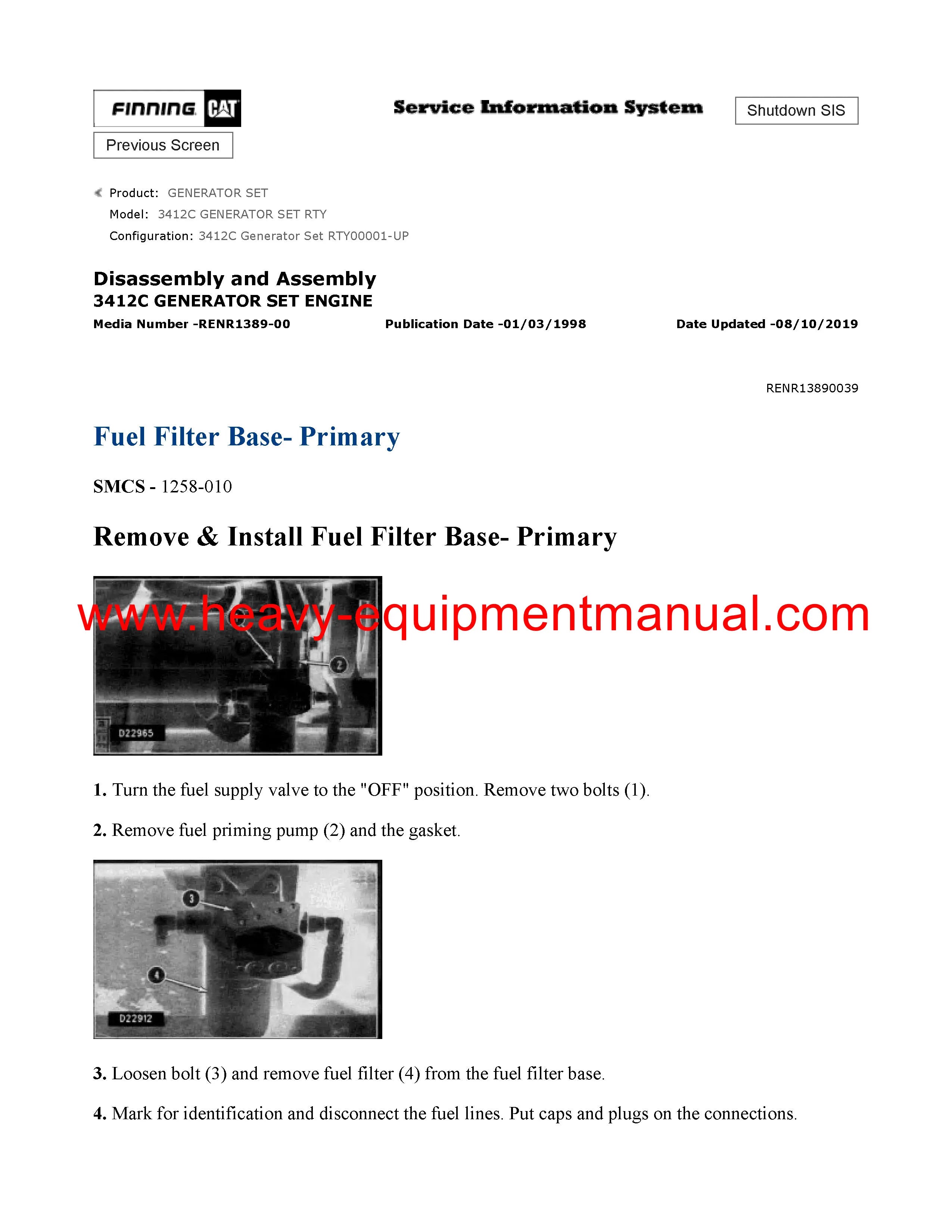 It is Complete Original Factory for Caterpillar 3412C GENERATOR SET. Covers all the service and repair information about Caterpillar 3412C GENERATOR SET. The information in this manual covers everything you need to know when you want to service and repair Caterpillar 3412C GENERATOR SET.