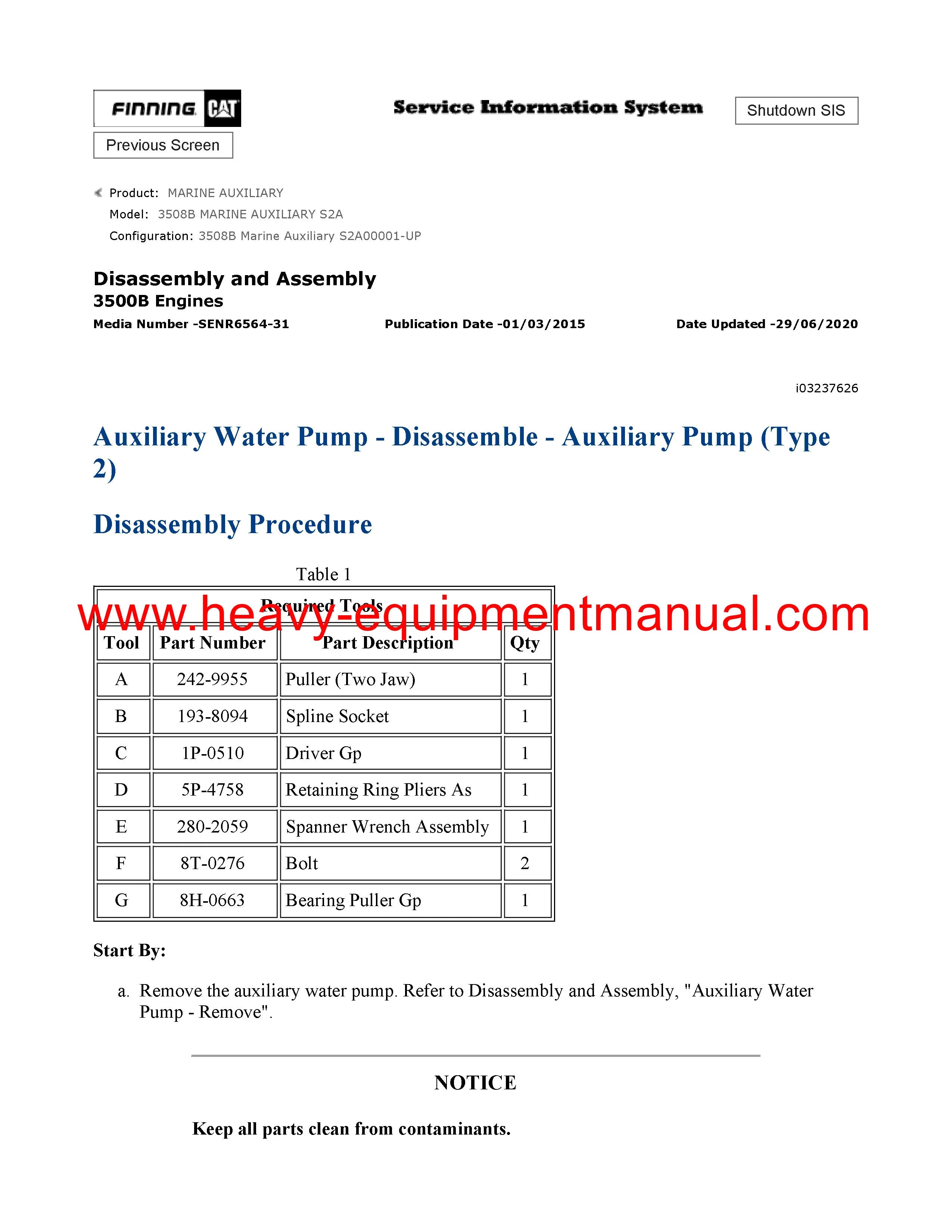 CATERPILLAR 3508B MARINE AUXILIARY SERVICE REPAIR MANUAL S2A