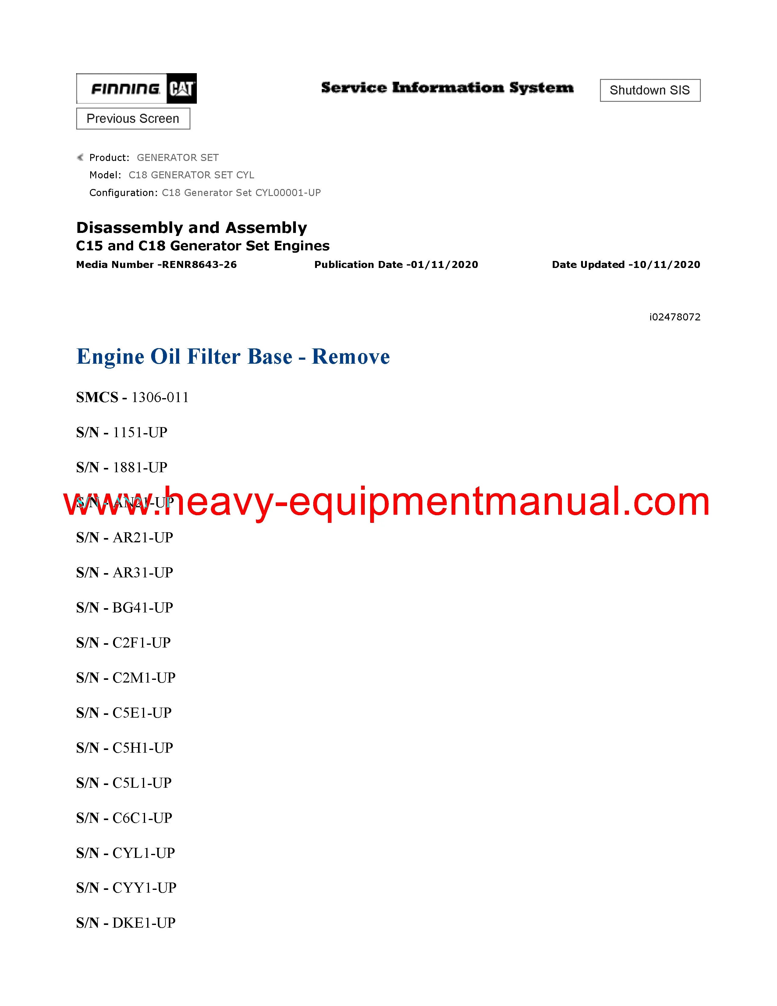 It is Complete Original Factory for Caterpillar C18 GENERATOR SET covers all the service and repair information about Caterpillar C18 GENERATOR SET. The information in this manual covers everything you need to know when you want to repair Caterpillar C18 GENERATOR SET.