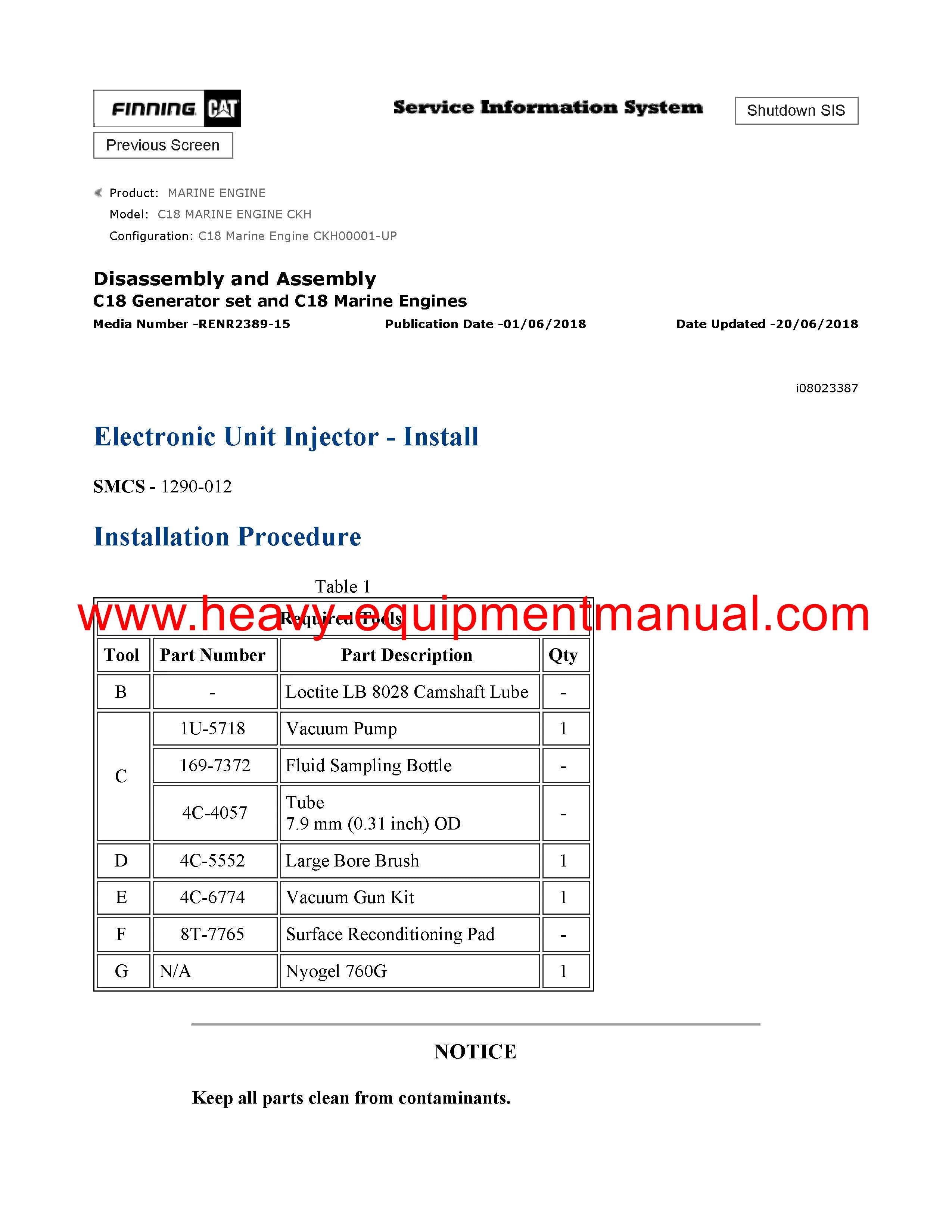It is Complete Original Factory for Caterpillar C18 MARINE ENGINE. Covers all the service and repair information about Caterpillar C18 MARINE ENGINE. The information in this manual covers everything you need to know when you want to service and repair Caterpillar C18 MARINE ENGINE.