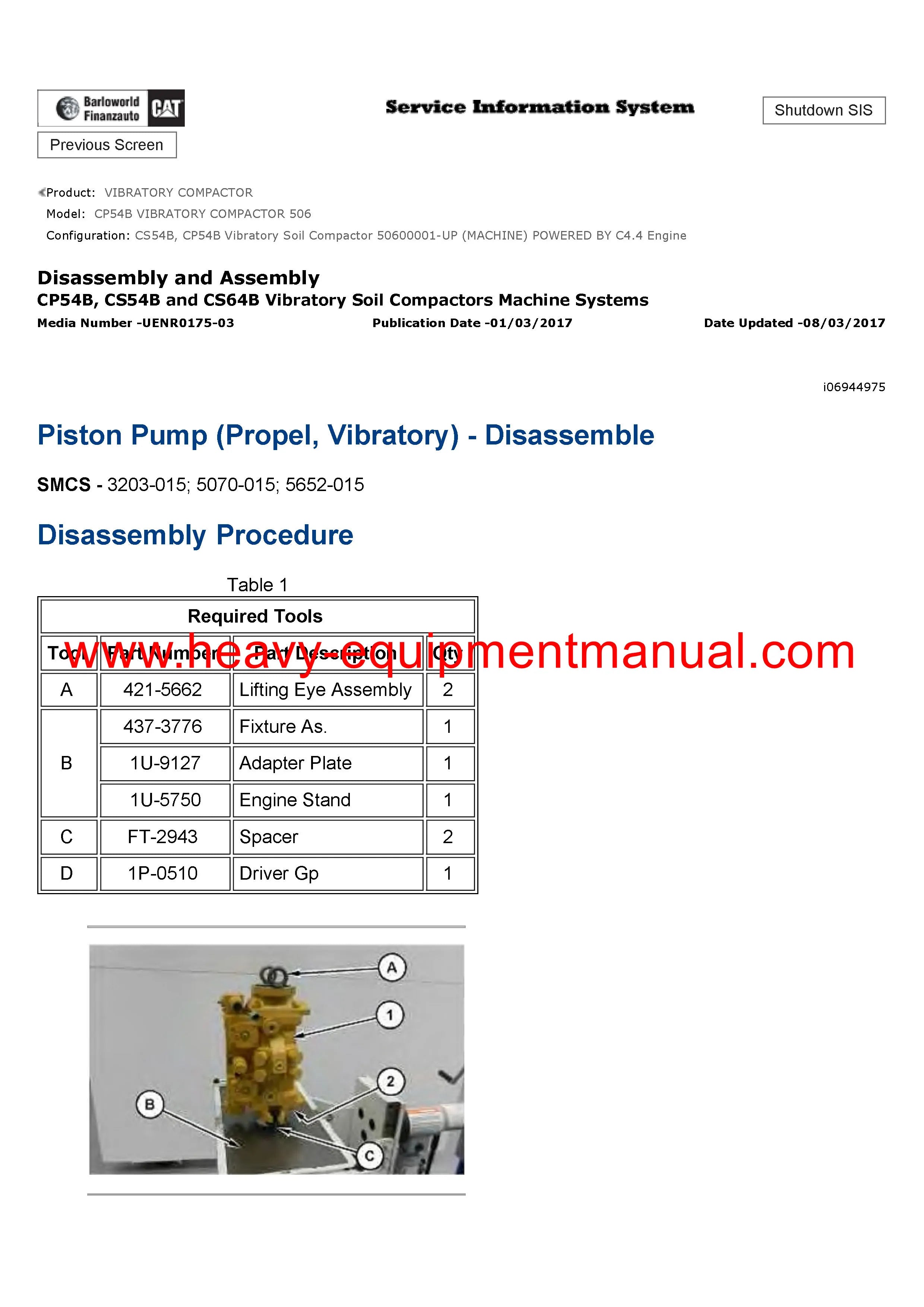 Caterpillar CP54B VIBRATORY COMPACTOR Disassembly and Assembly