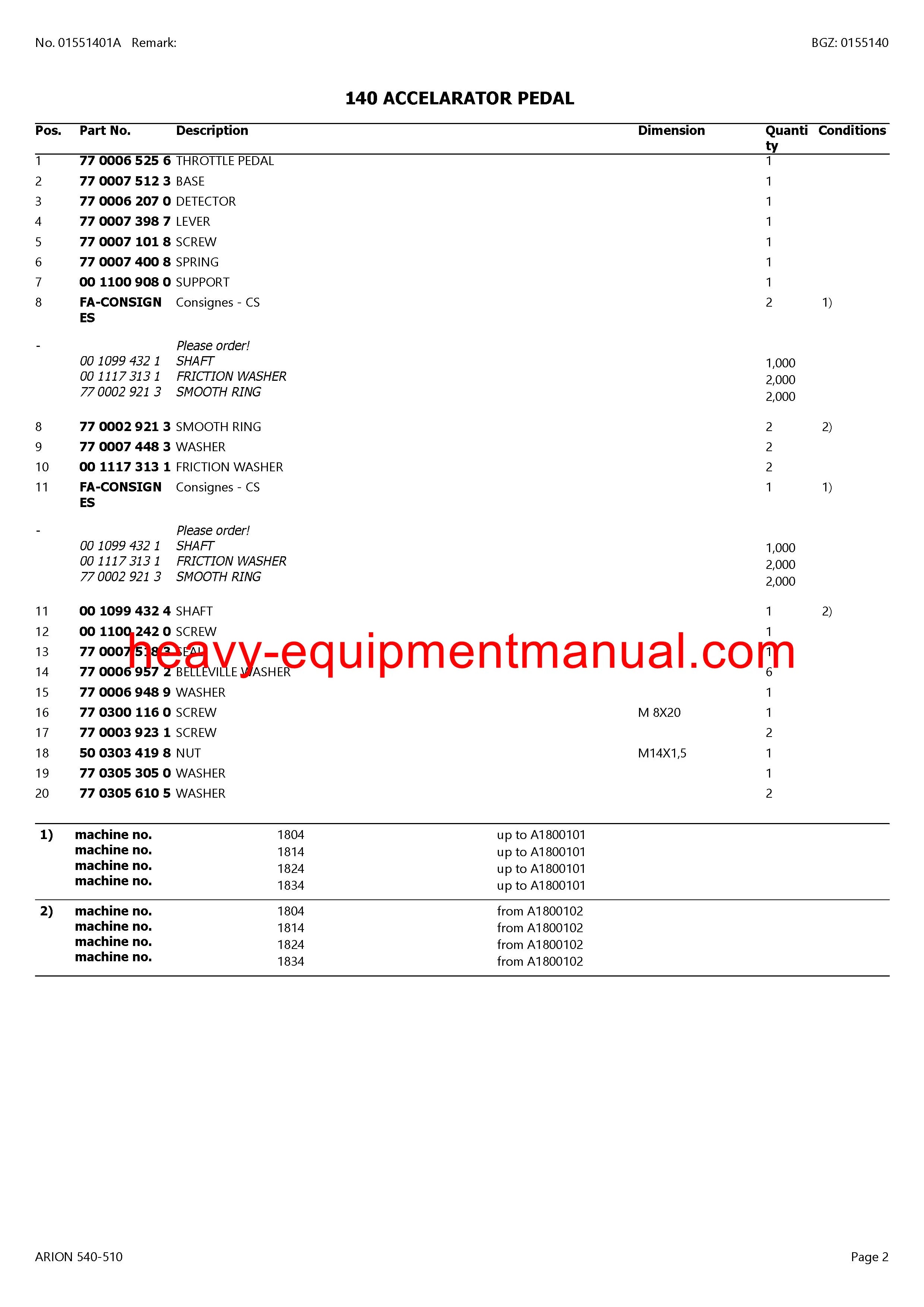 PDF Claas 540 - 510 Arion Tractor Parts Manual