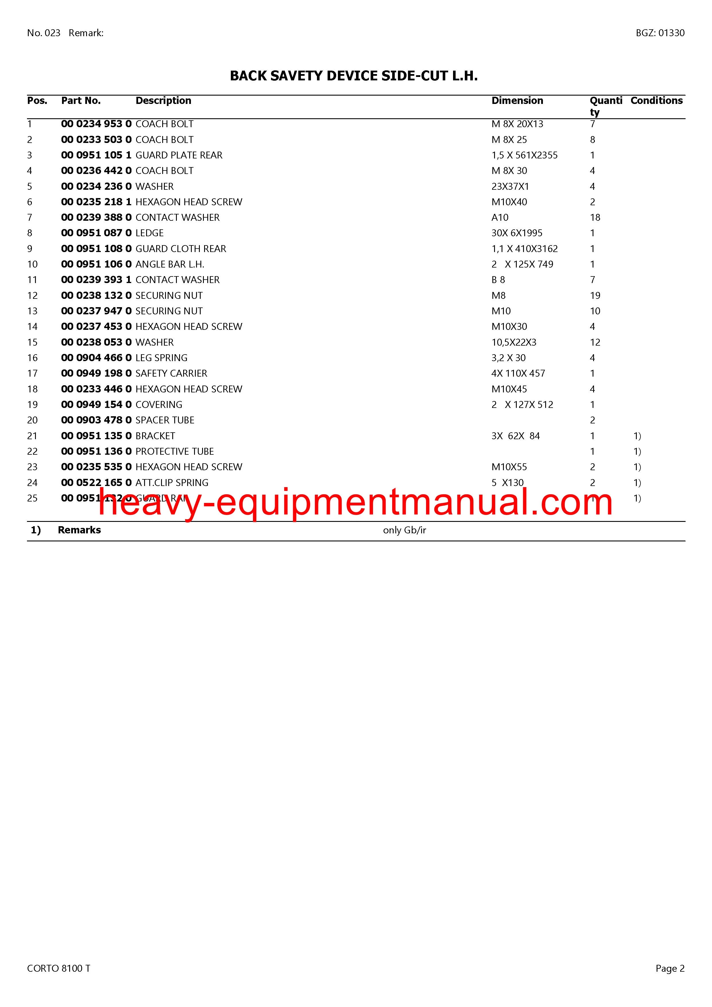 PDF Claas 8100 T Corto Mower Parts Manual