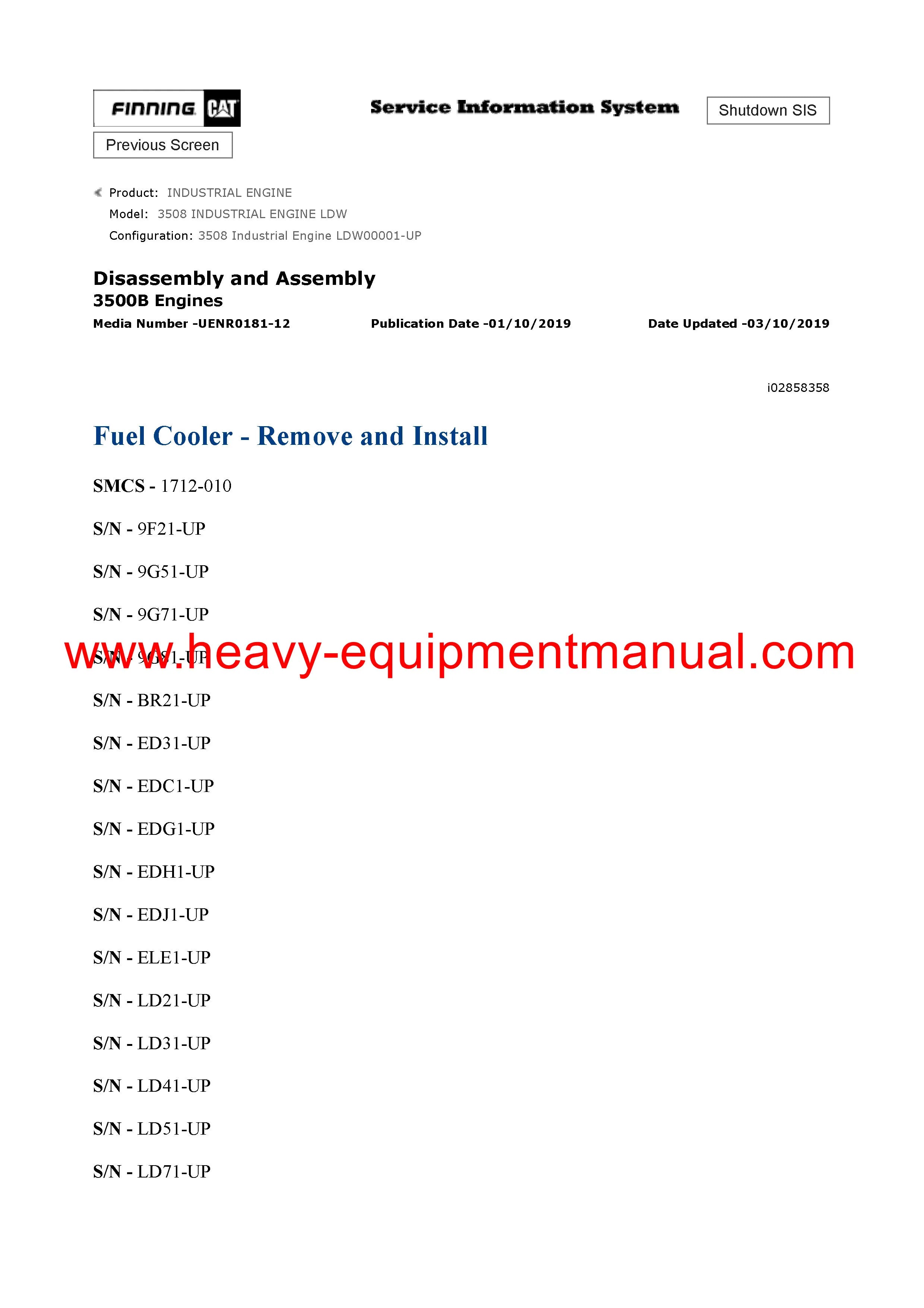 It is Complete Original Factory for Caterpillar 3508 INDUSTRIAL ENGINE. Covers all the service and repair information about Caterpillar 3508 INDUSTRIAL ENGINE. The information in this manual covers everything you need to know when you want to service and repair Caterpillar 3508 INDUSTRIAL ENGINE.
