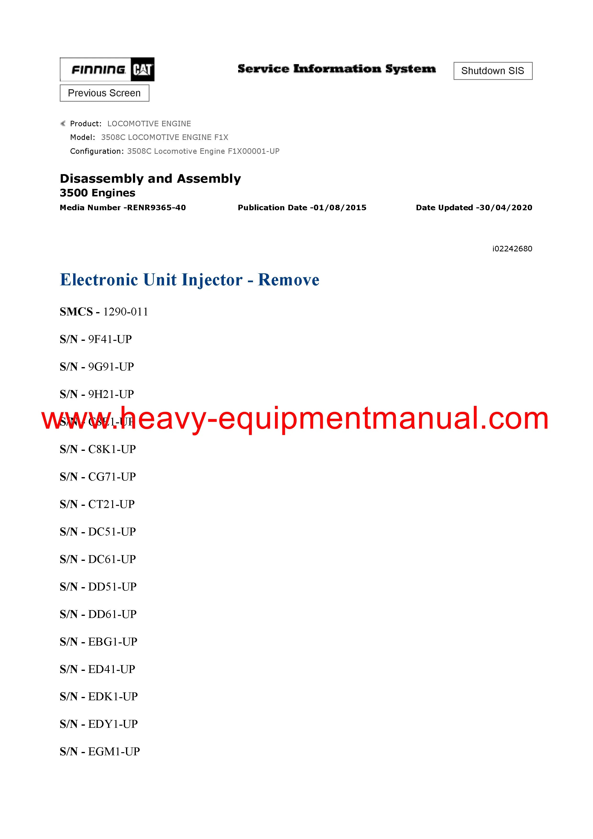It is Complete Original Factory for Caterpillar 3508C LOCOMOTIVE ENGINE. Covers all the service and repair information about Caterpillar 3508C LOCOMOTIVE ENGINE. The information in this manual covers everything you need to know when you want to service and repair Caterpillar 3508C LOCOMOTIVE ENGINE.