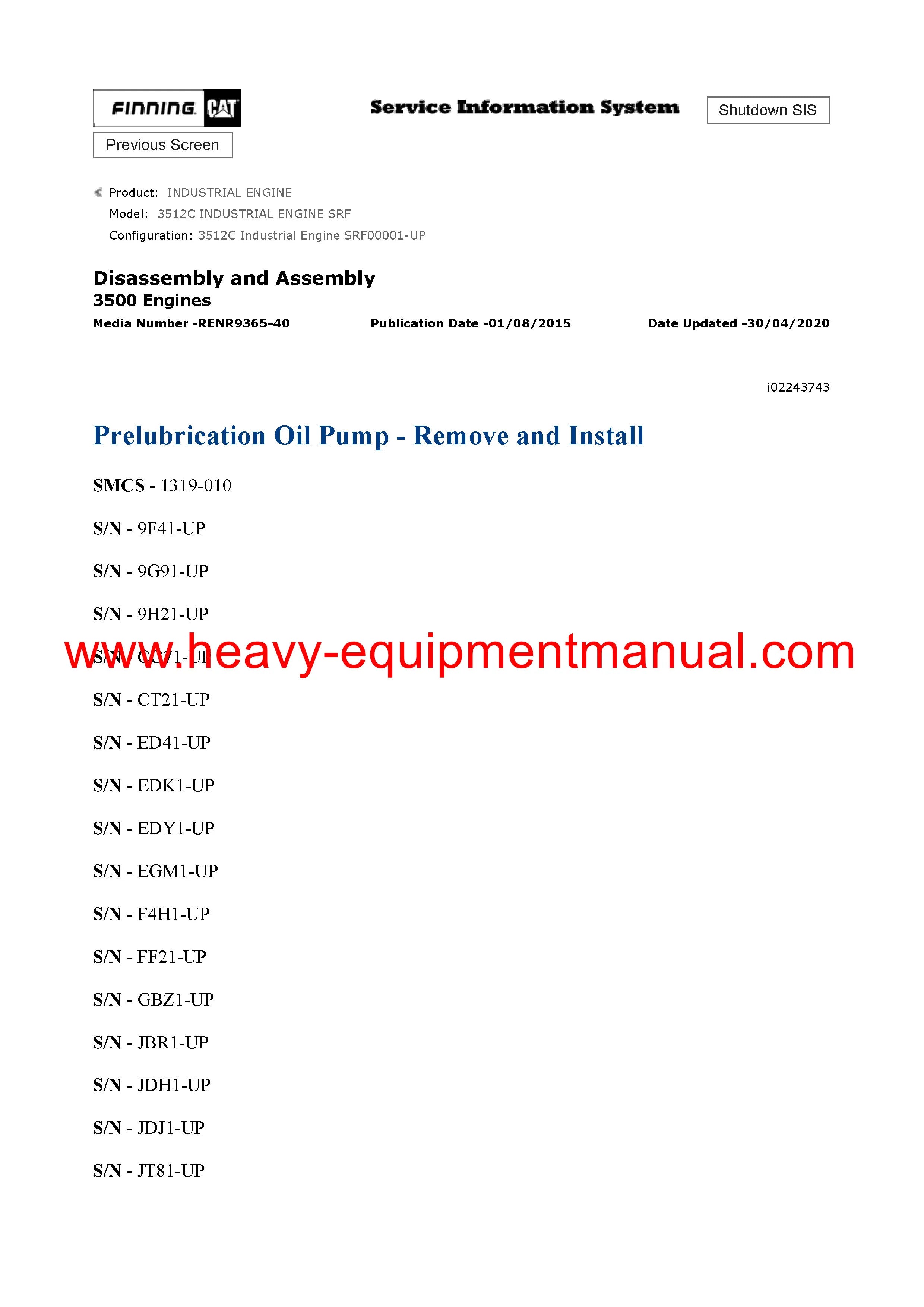 It is Complete Original Factory for Caterpillar 3512C INDUSTRIAL ENGINE. Covers all the service and repair information about Caterpillar 3512C INDUSTRIAL ENGINE. The information in this manual covers everything you need to know when you want to service and repair Caterpillar 3512C INDUSTRIAL ENGINE.