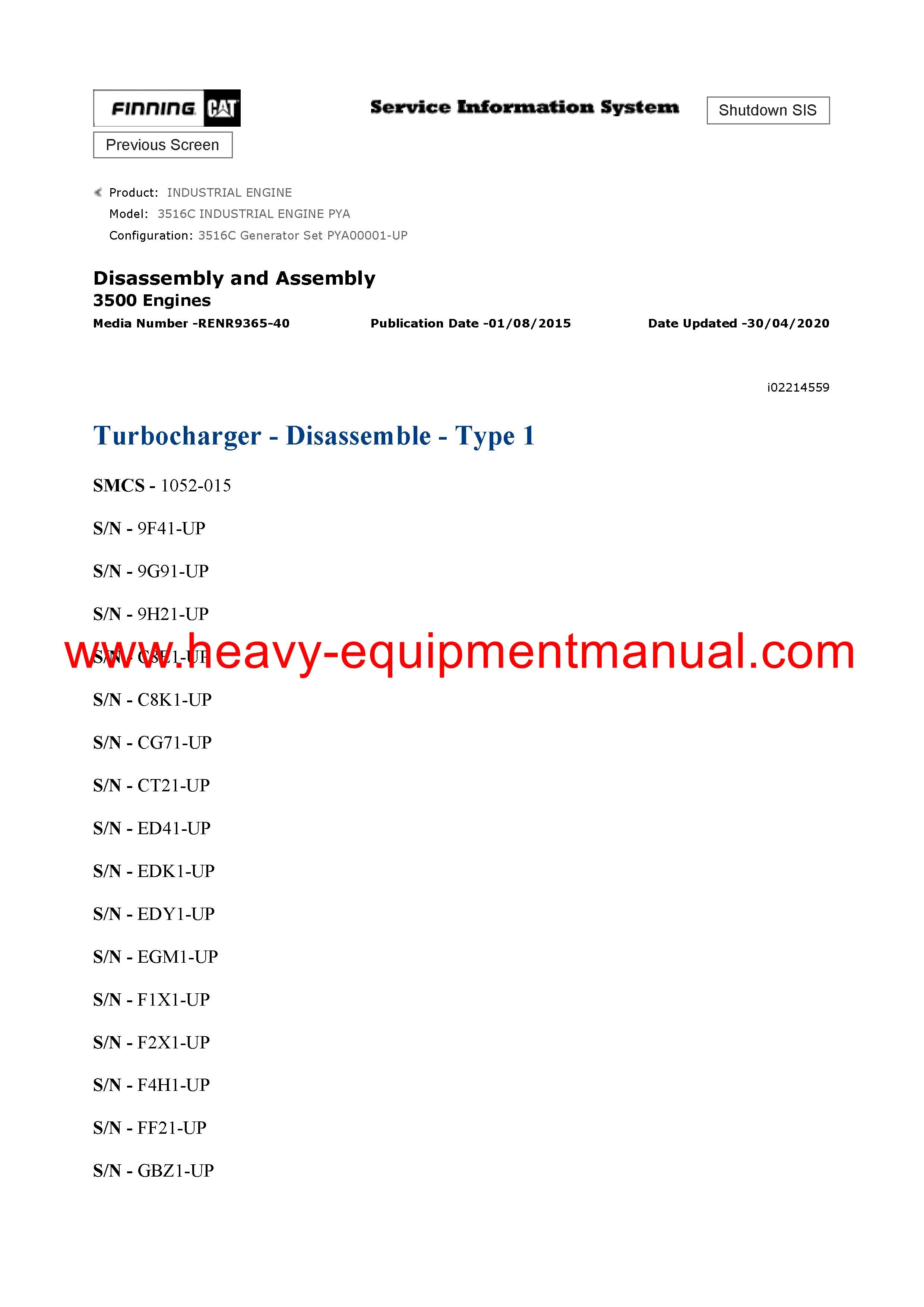 Caterpillar 3516C INDUSTRIAL ENGINE Disassembly and Assembly