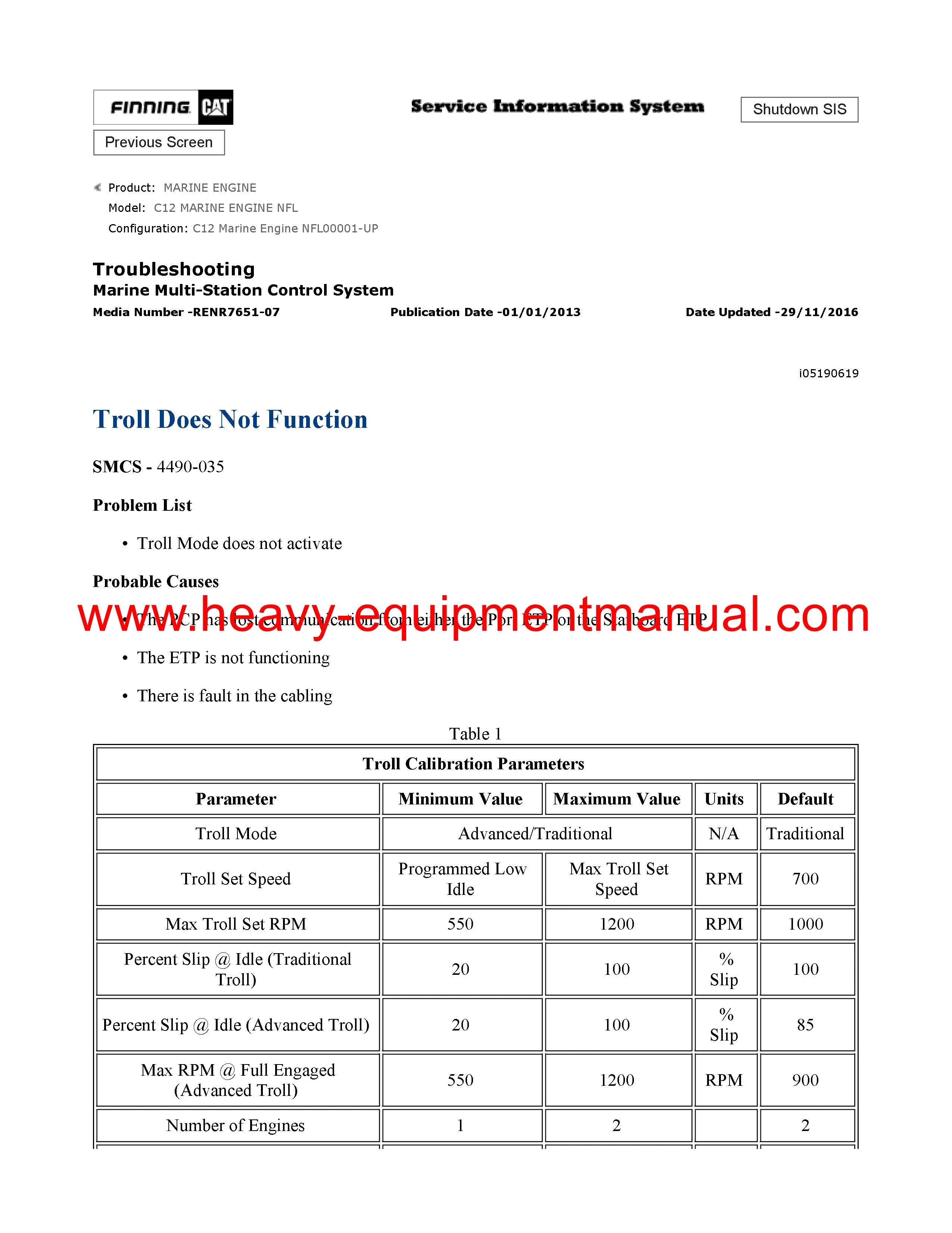 Caterpillar C12 MARINE ENGINE Troubleshooting