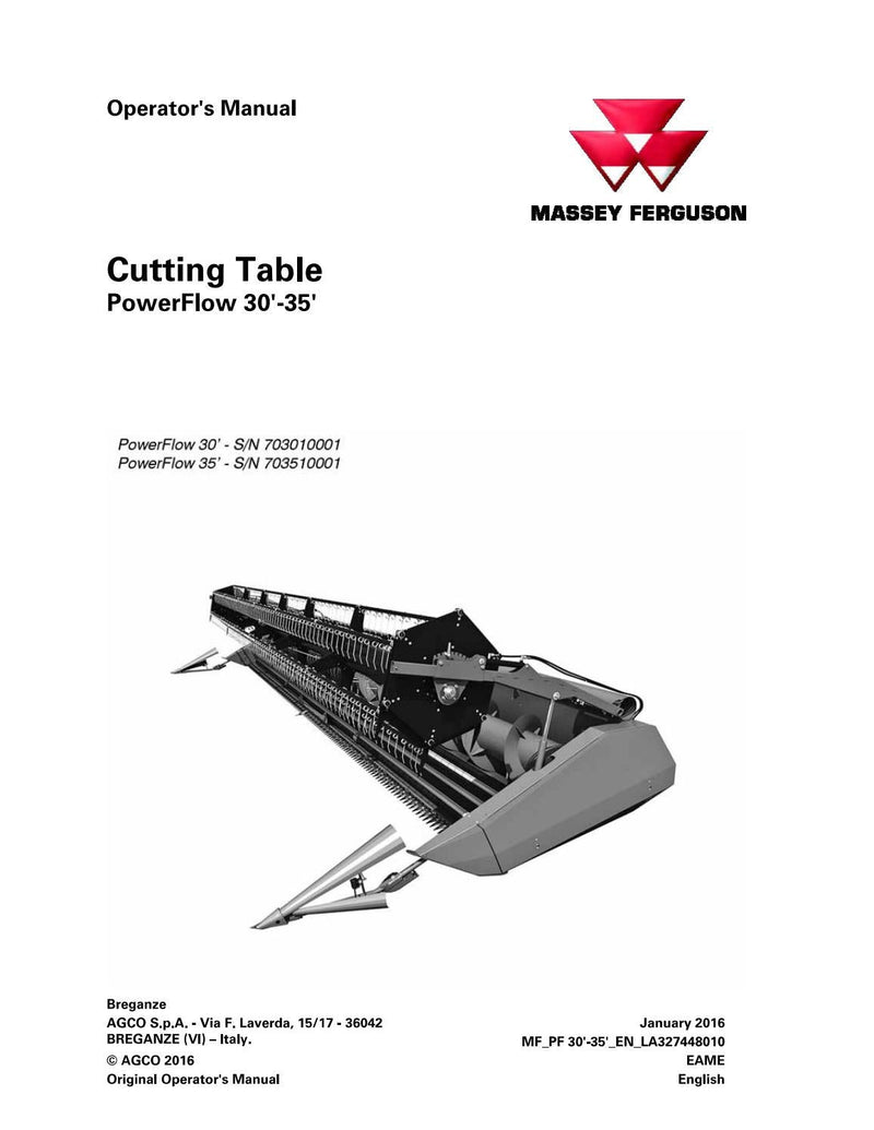 MASSEY FERGUSON POWERFLOW 30-35 CUTTING TABLE OPERATOR’S MANUAL 2016 3274480M