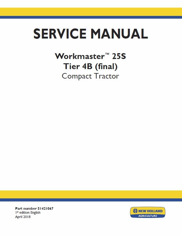 It is Complete Original Factory for New Holland 25S Tier 4B (final) Compact Tractor. Covers all the service and repair information about New Holland 25S Tier 4B (final) Compact Tractor. The information in this manual covers everything you need to know when you want to service and repair New Holland 25S Tier 4B (final) Compact Tractor.