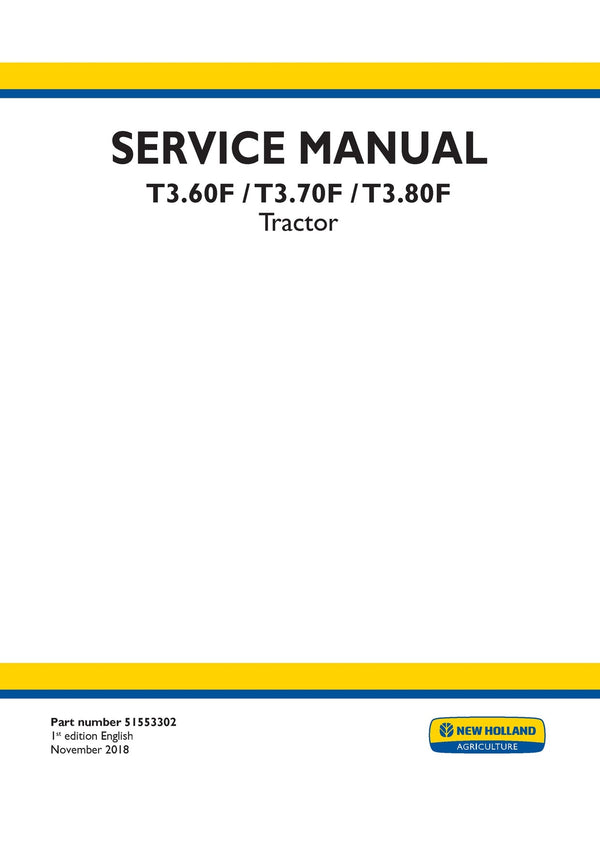 It is Complete Original Factory for New Holland T3.60F, T3.70F, T3.80F Tractor. Covers all the service and repair information about New Holland T3.60F, T3.70F, T3.80F Tractor. The information in this manual covers everything you need to know when you want to service and repair New Holland T3.60F, T3.70F, T3.80F Tractor.