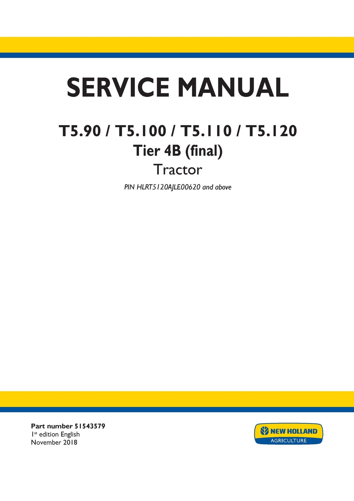 Download New Holland T5.90 T5.100 T5.110 T5.120 Tier 4B (final) Tractor Service Repair Manual 51543579