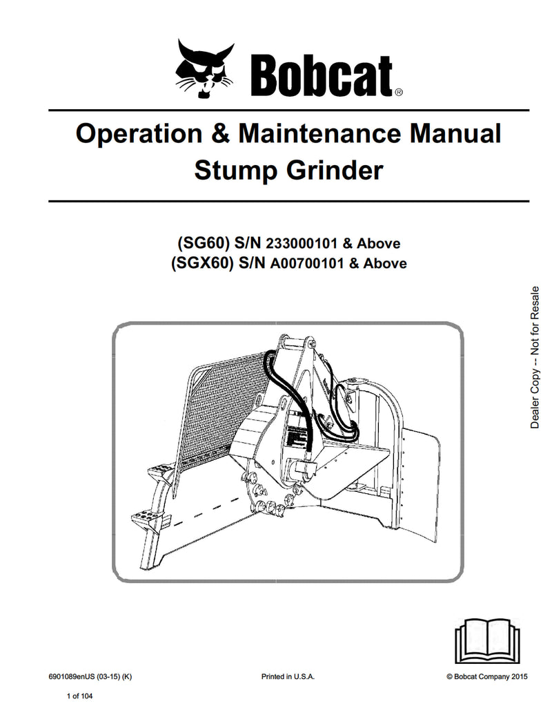 Bobcat SG60 Stump Grinder Teeth (233000101 & above) Operation & Maintenance Manual