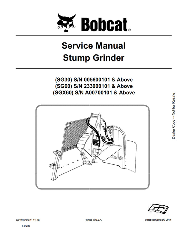 Bobcat SG60 Stump Grinder Teeth (233000101 & above) Service Manual - PDF Download