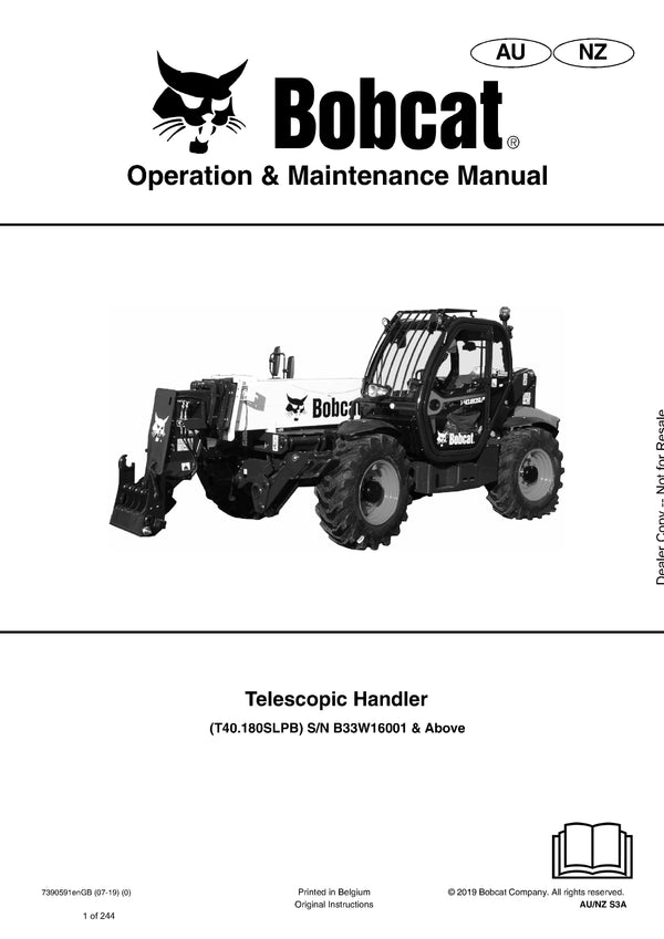 Get Instant Bobcat T40.180SLPB Telescopic Handler Operation And Maintenance Manual S/N B33W16001 & Above