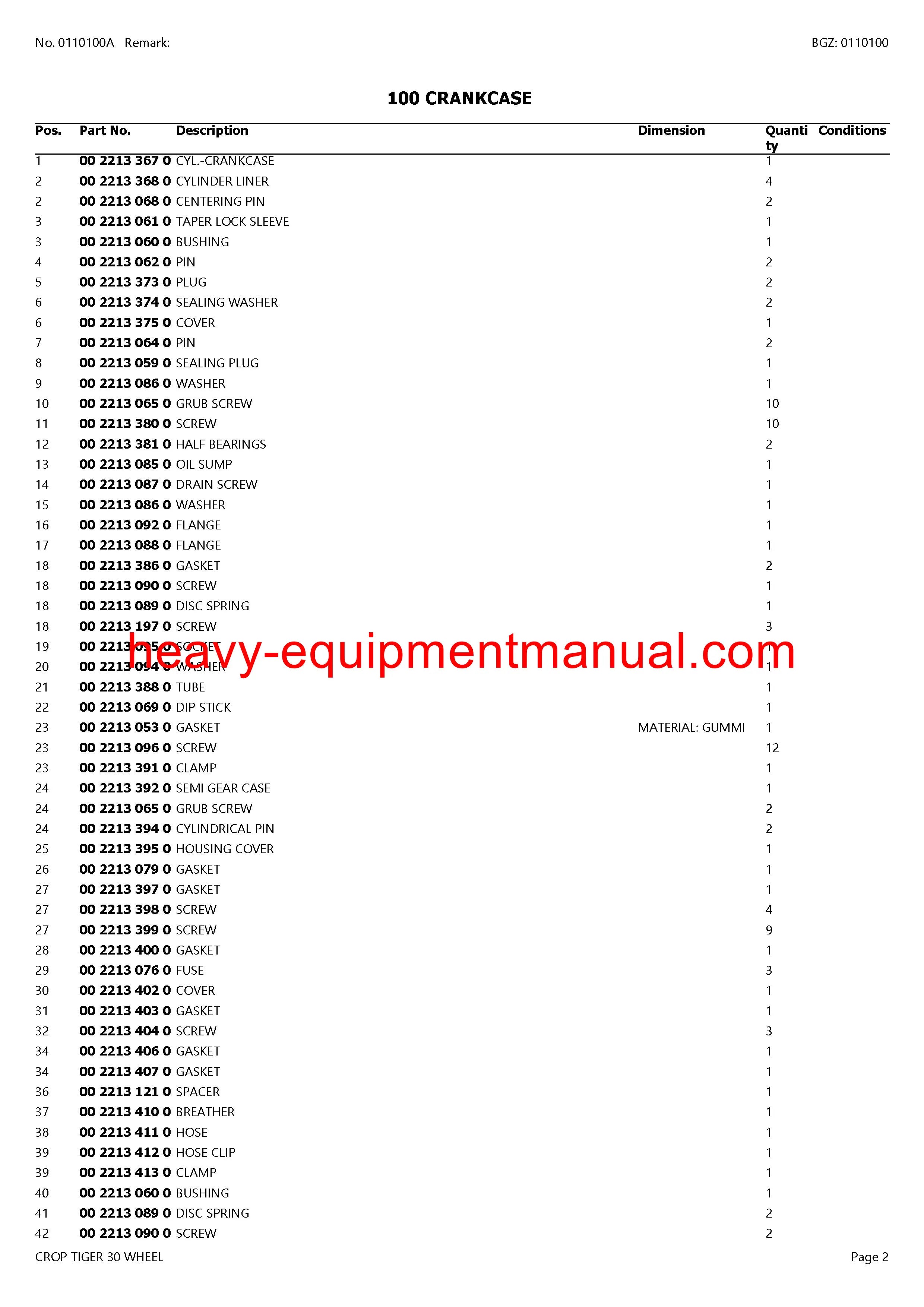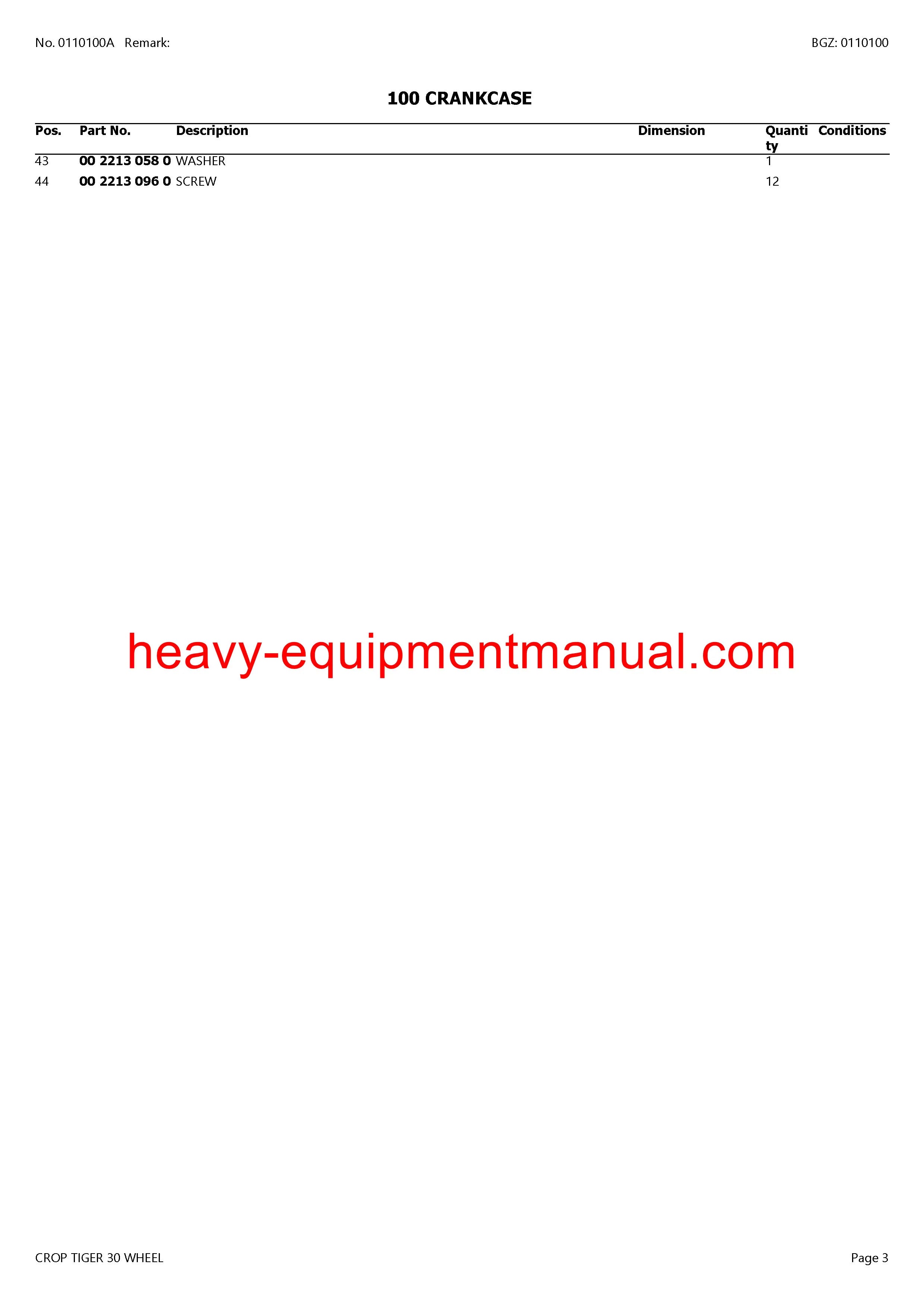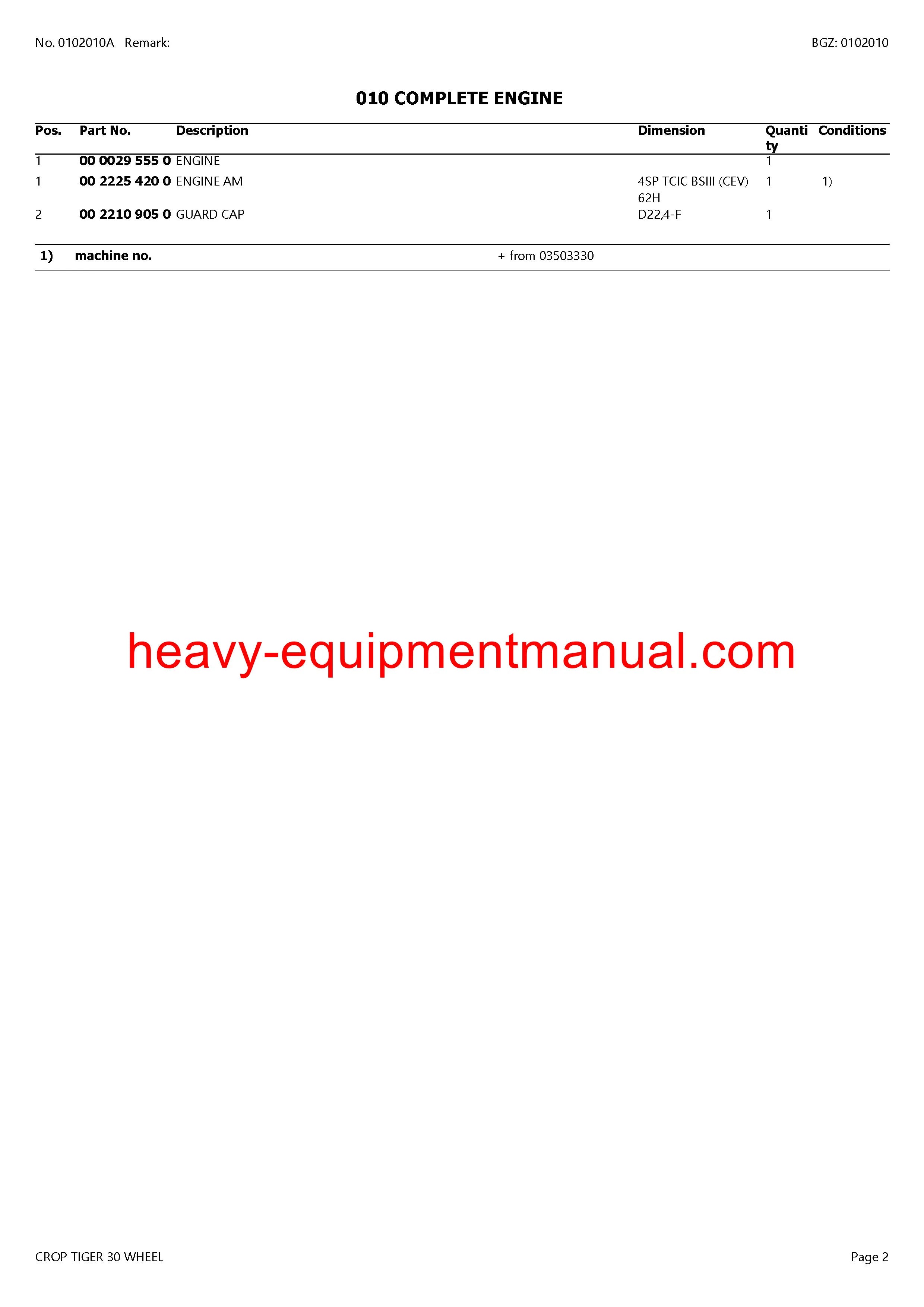 Download Claas Crop Tiger 30 Wheel Combine Parts Manual PDF (SN: 03500011-03500115)