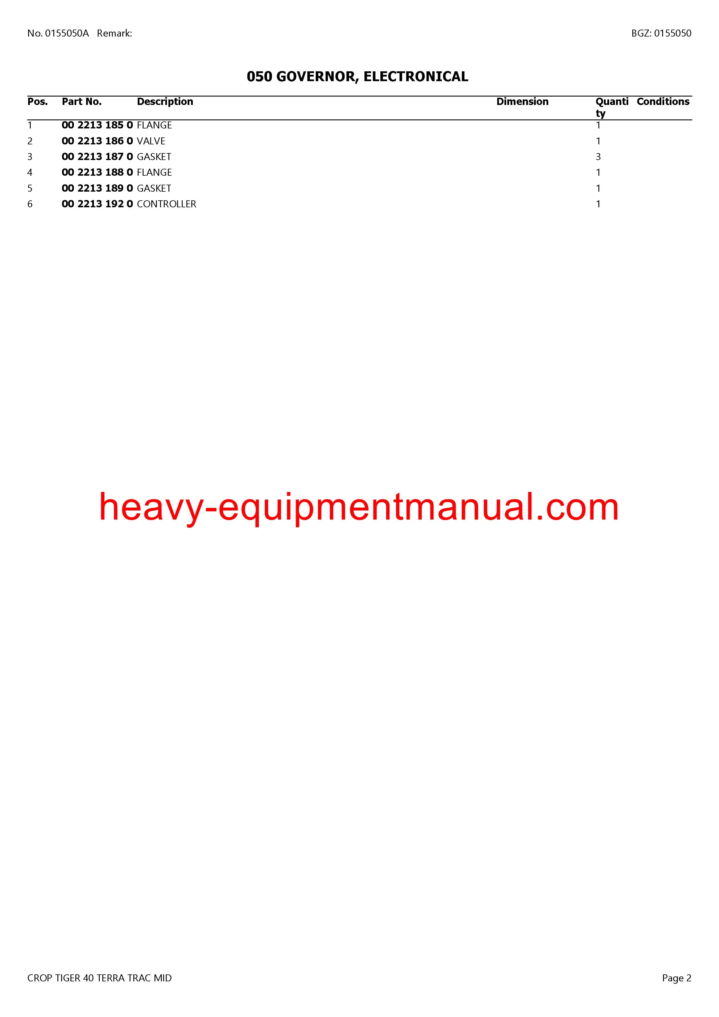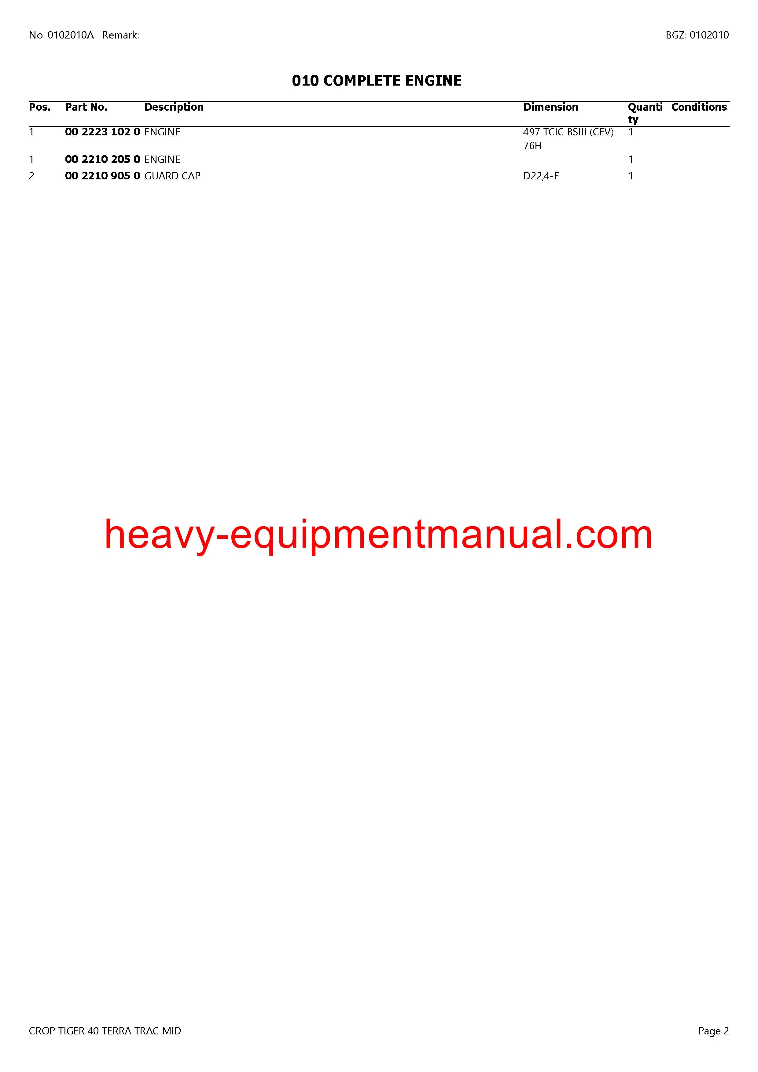 Download Claas Crop Tiger 40 Terra Trac Mid Combine Parts Manual PDF
