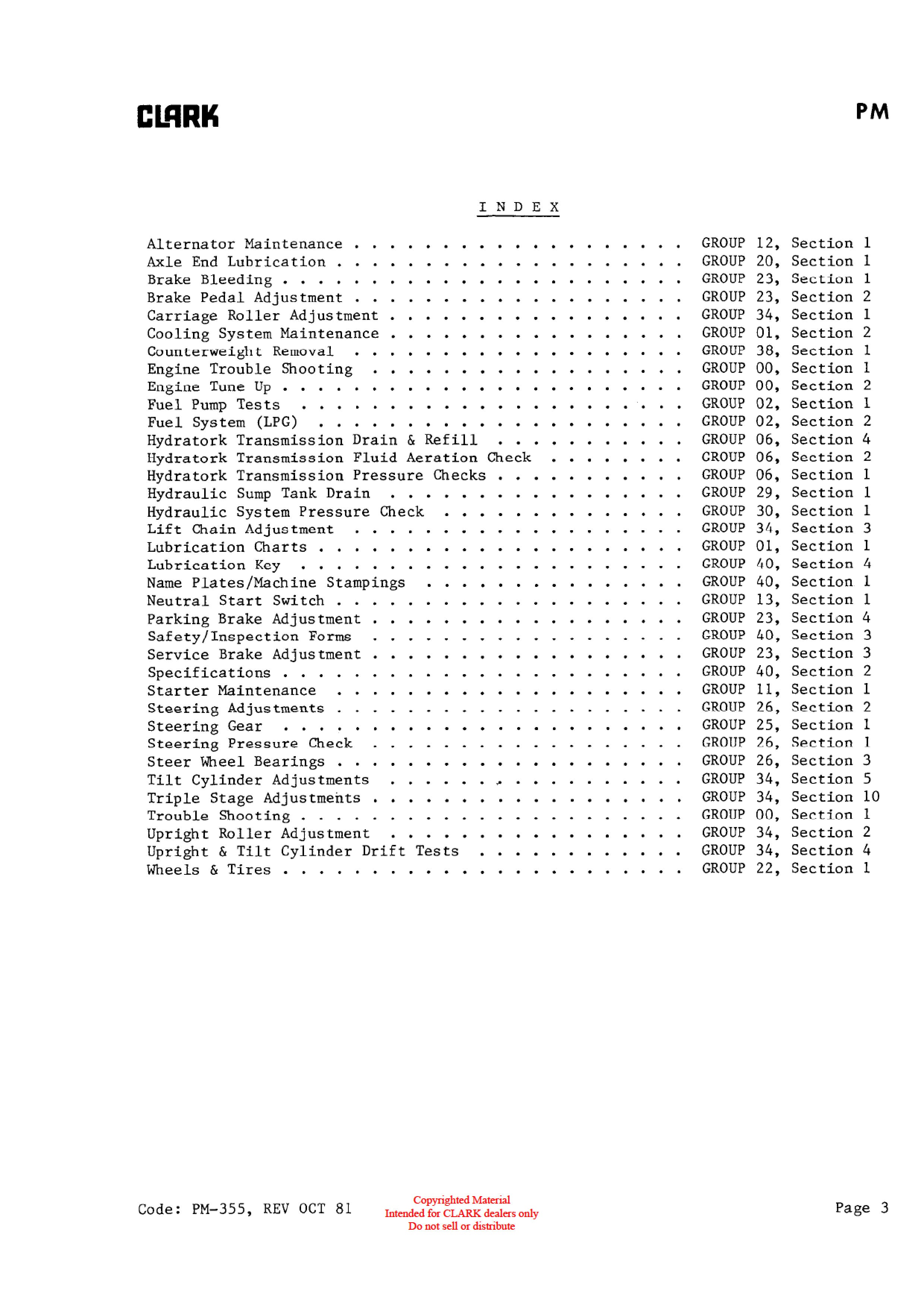 Get Instant Clark 915 (PMA-544) Forklift Planned Maintenance & Adjustment Manual - Download PDF