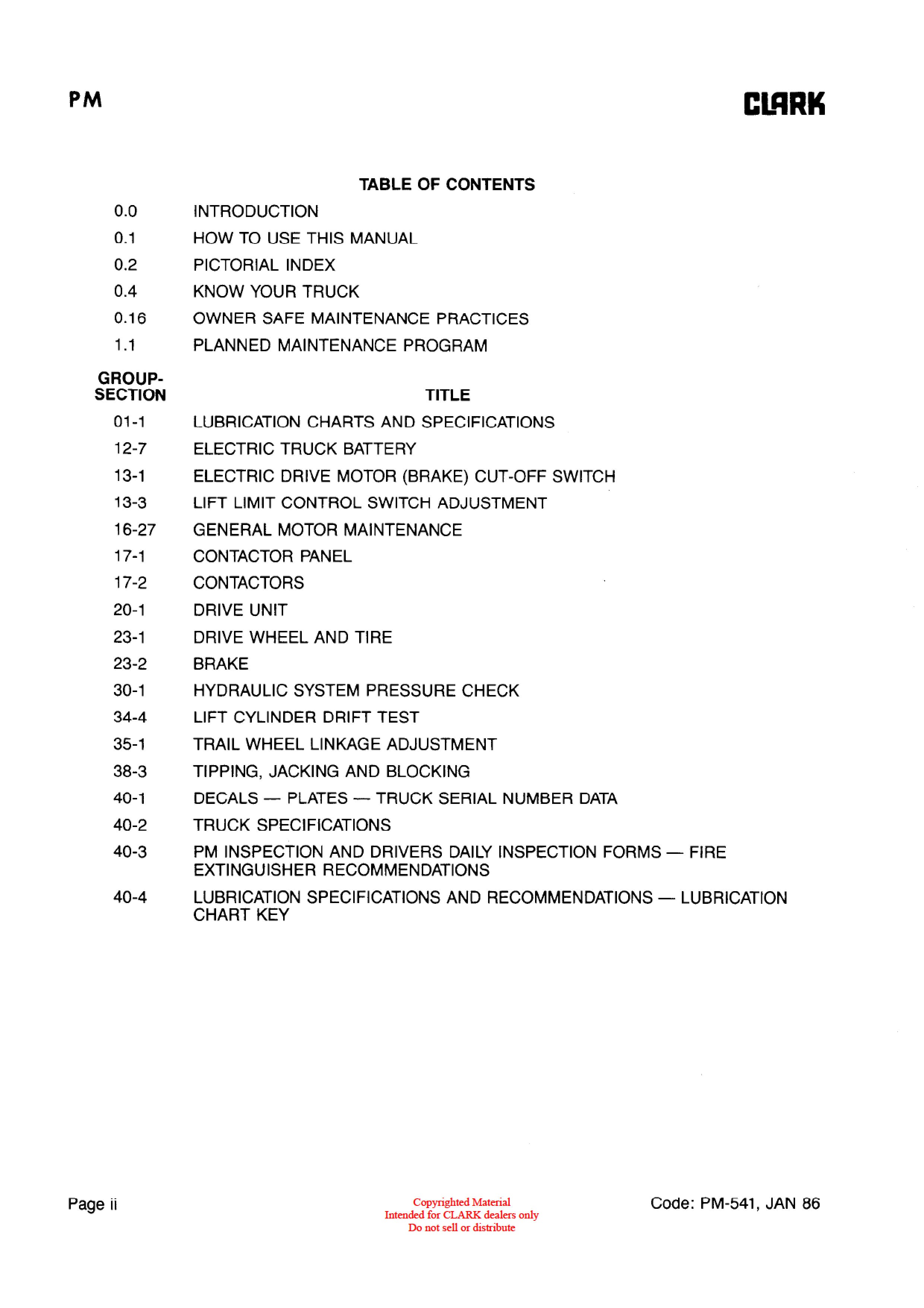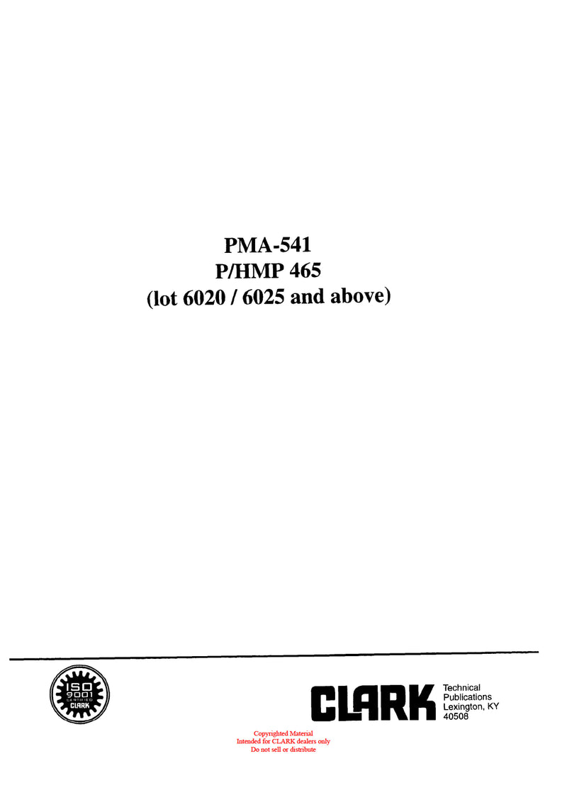 Clark P/HMP 465 (PMA-541) Forklift Planned Maintenance & Adjustment Manual - Download PDF