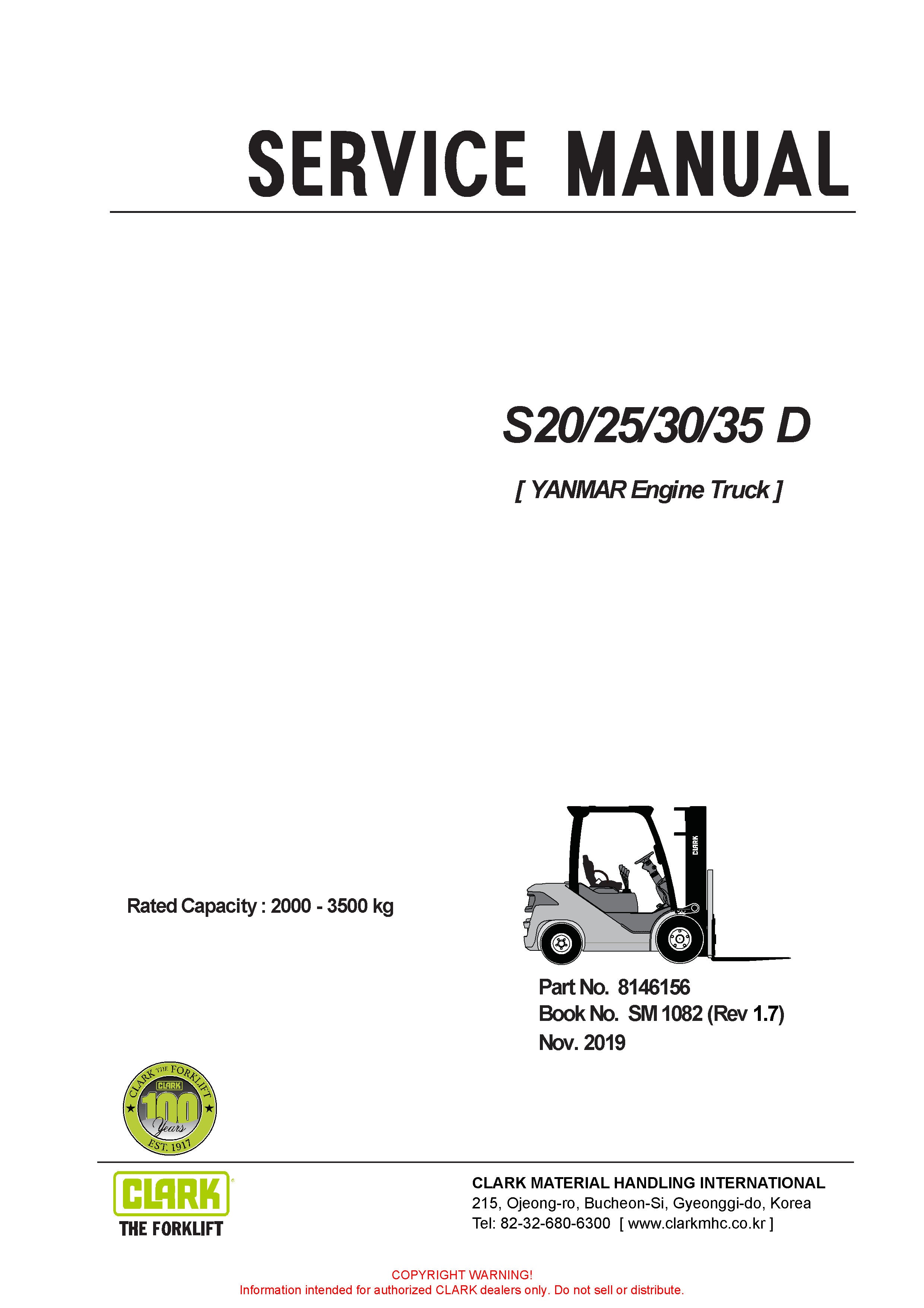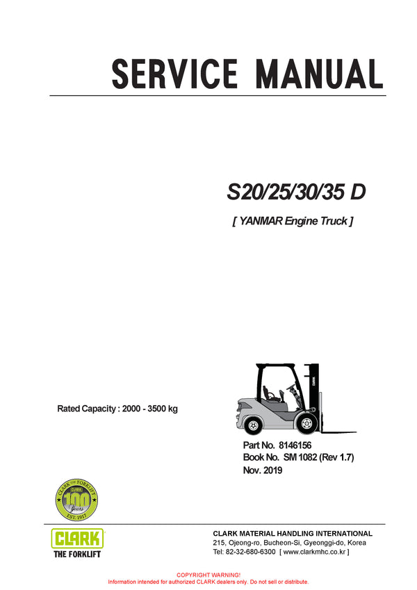 Get Instant Clark SM-1082 Forklift Service Repair Manual - PDF Download